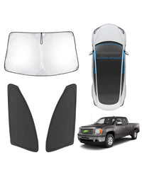 Karltys Windshield Sunscreen--Helps with Heat & UV Reduction to Your Car. --Fit perfectly for GMC Sierra / Chevy Silverado 1500 2007 2008 2009 2010 2011 2012 2013, no gap. --Quality 210T reflective and high density fabric, works really well to keep the sun and harmful UV rays away. --Cover the entire windshield, no worries regarding fading or cracking of the interior. --Do a better job in blocking out the direct sunlight and UV rays, and make your car stay cool in sunny days. --Excellent protection for privacy to take a nap or temporary parking. --Install and remove in seconds. Folding is a snap too. -- Come with a nice pouch to keep the shades from being damaged when not being used. Package Includes: 1PC Windshield Blocker 2PCS Front Seat Side Window Covers