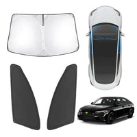 Karltys Windshield Sunscreen--Helps with Heat & UV Reduction to Your Car. --Fit perfectly for Honda Civic 2022 2023 2024 11th Gen., no gap. --Quality 210T reflective and high density fabric, works really well to keep the sun and harmful UV rays away. --Cover the entire windshield, no worries regarding fading or cracking of the interior. --Do a better job in blocking out the direct sunlight and UV rays, and make your car stay cool in sunny days. --Excellent protection for privacy to take a nap or temporary parking. --Install and remove in seconds. Folding is a snap too. -- Come with a nice pouch to keep the shades from being damaged when not being used. Package Includes: 1PC Windshield Blocker 2PCS Front Seat Side Window Covers