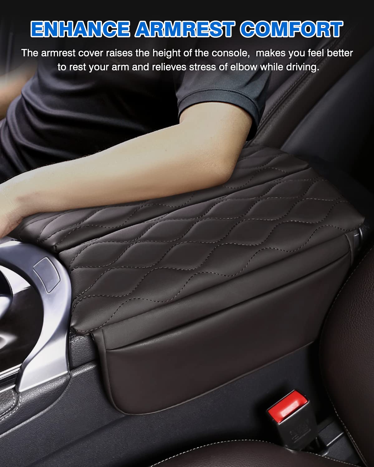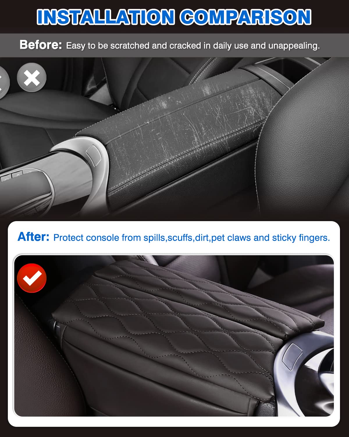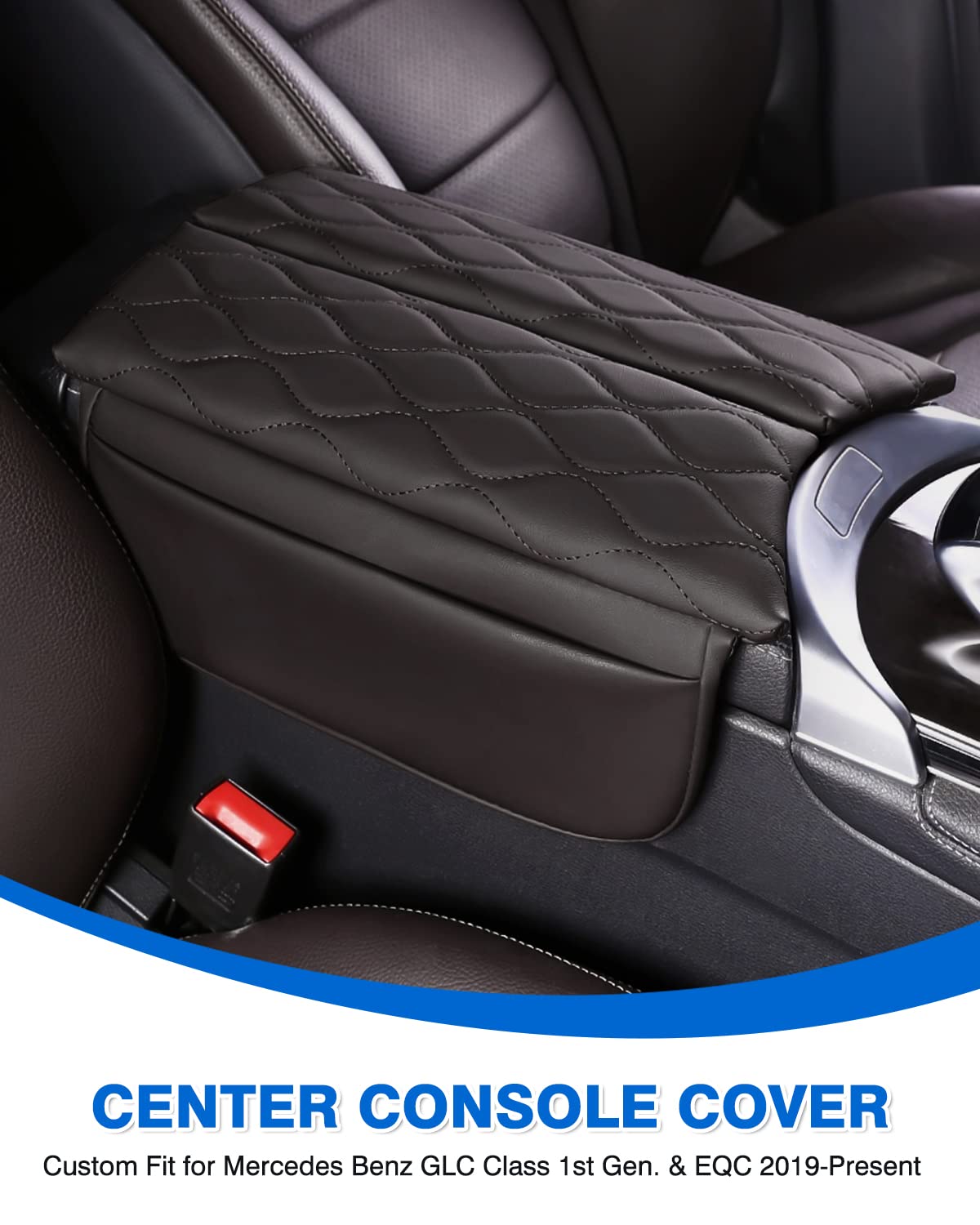Karltys Armrest Cover-- Perfect to Protect Your Console --Perfect fit for Mercedes Benz C Class W205 C250 C300, GLC Class 2016 2017 2018 2019 2020 2021 2022 and EQC 2019 2020 2021 2022 2023 2024. --High-end PU leather, soft and comfortable to use. --Only attach to the top part, easy access to the armrest. --Hold up against scratches from kids and pets. --Keep your console from oil, sweat, tear and sticky fingers. --Add comfort to rest your arm and elbow. --Easy to apply, remove and clean by water. --Secure in place and never move around.