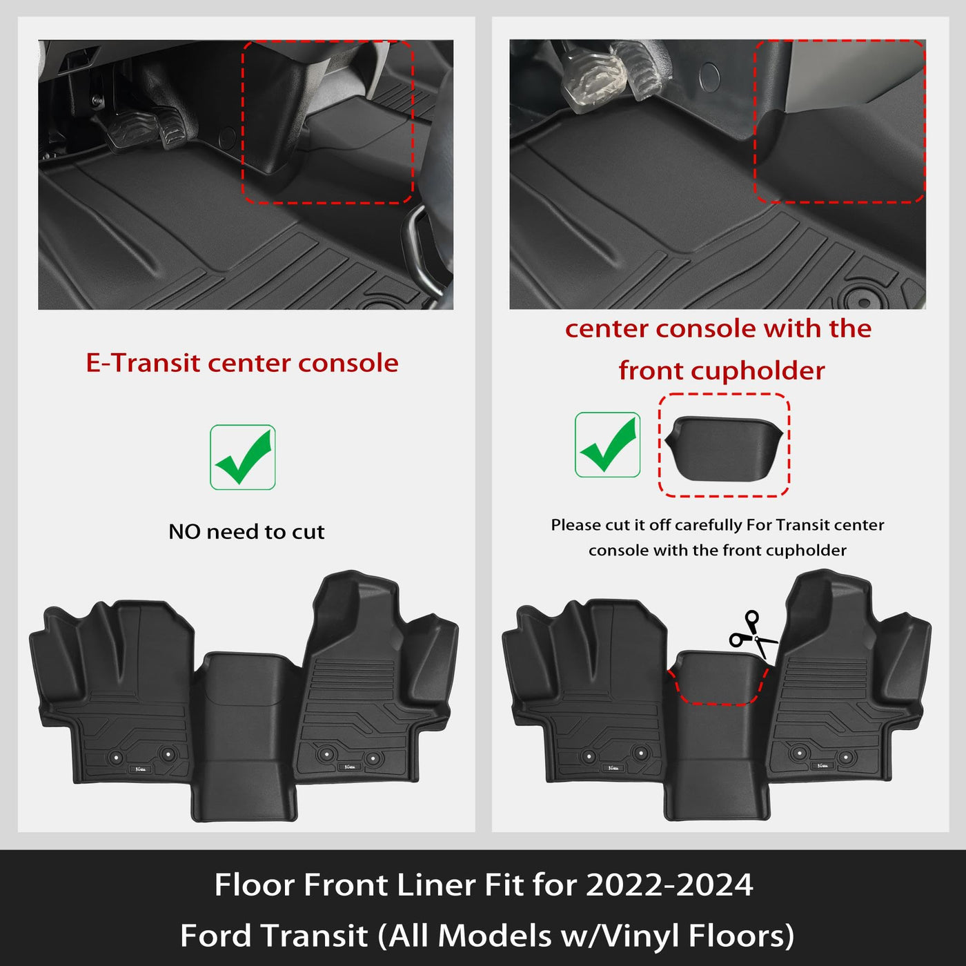Karpal Floor Mat Front Liner Fit For 2022-2024 Ford Transit (All Models W/Vinyl Floors), Custom Fit Tpe All Weather Ford Transit
