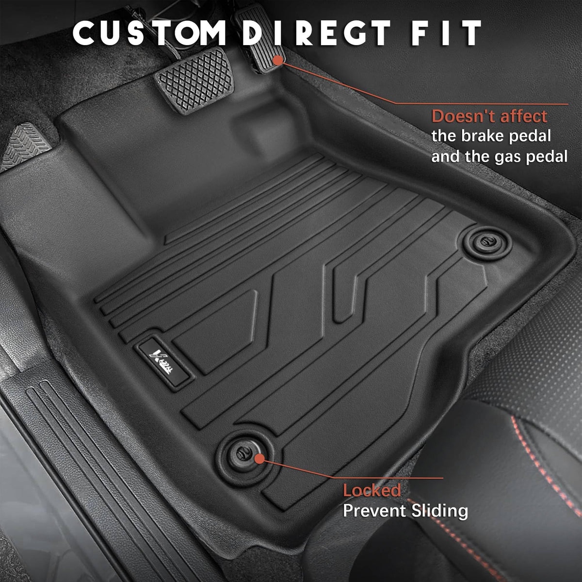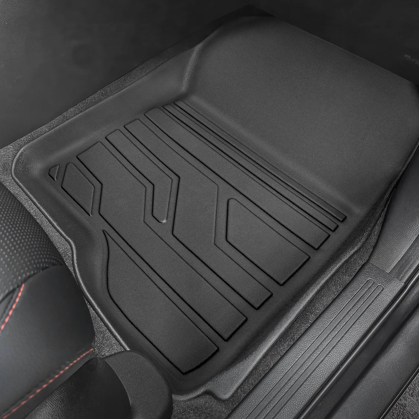PREMIUM TPE MATERIAL: Made from high-quality thermoplastic elastomer (TPE), these floor mats are not only robust but also environmentally friendly. TPE is a recyclable material known for its excellent pliability and resilience, making it an ideal choice for car floor liners.
