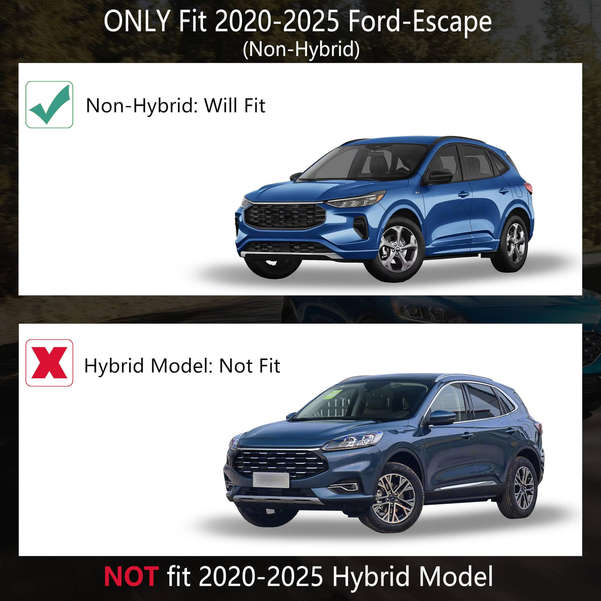 CUSTOM FIT: KARPAL floor mats are compatible with Ford Escape 2020 2021 2022 2023 2024 2025 (NOT Fit Hybrid). Utilizing advanced 3D laser scanning technology and precision design on Ford Escape floor mats and trunk liner set, ensuring a seamless match with the original cars rear and cargo space and providing comprehensive protection. PREMIUM TPE MATERIAL: Crafted from TPE material, our floor mats fit for Ford Escape (NON Hybrid) contribute to environmental sustainability. TPE is a recyclable thermoplastic elastomer with excellent pliability and resilience. ALL-WEATHER PROTECTION: Whether it's rain, snow, salt or mud, the protection liners are designed to withstand all season conditions. If there were to be snow melting on the car floor protectors, the raised edges help prevent water, gravel grain and other debris from leaking under the car liners and the deep grooves and ridges channel liquid away from your feet.