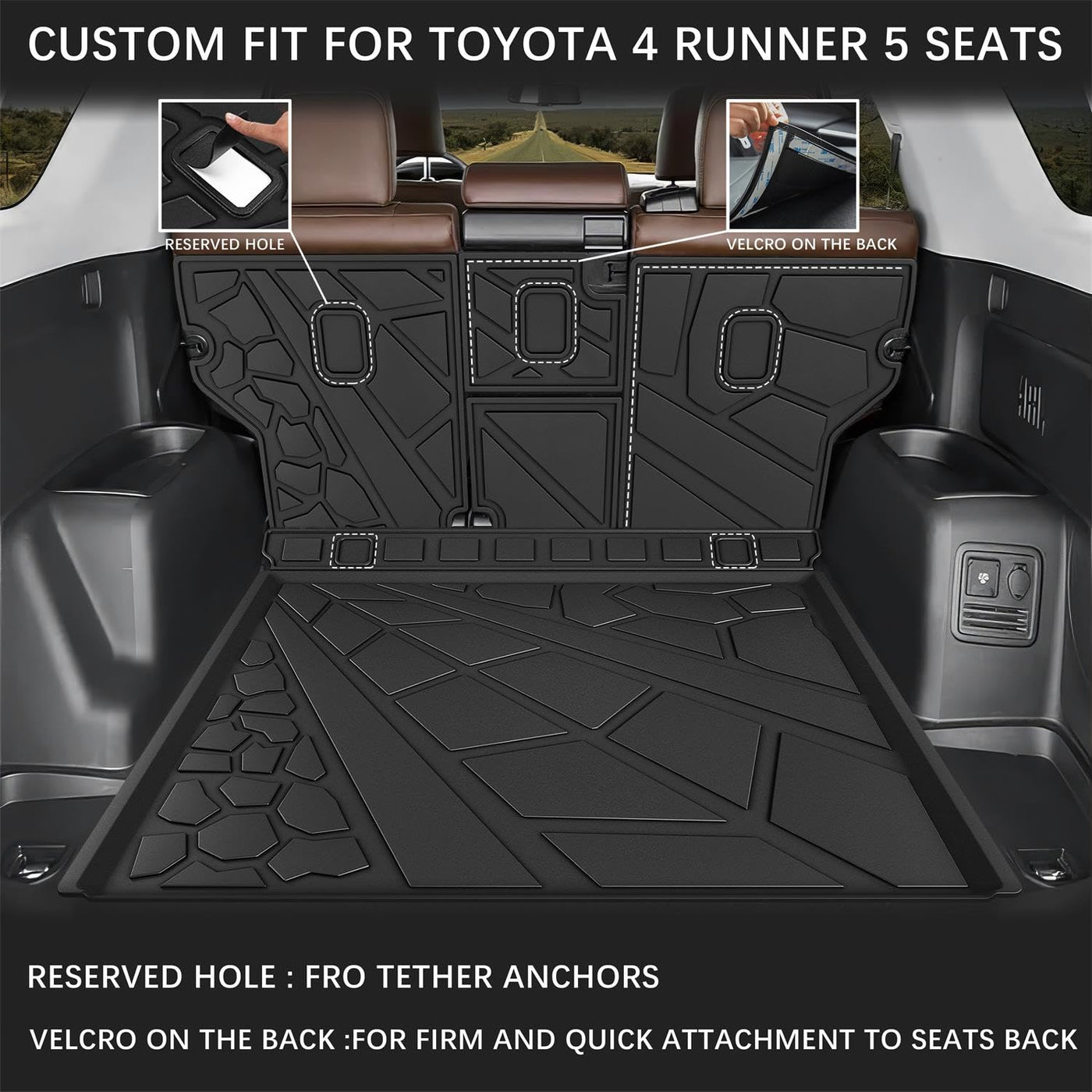 KARPAL Floor Mats & Cargo Liners for 2013-2024 Toyota 4Runner (Only for 5-Seat Without Sliding Cargo Tray), TPE Floor Liners & Trunk Mats for 5th Gen 4Runner (Include TRD) - 8 PCS (NOT for 2025)