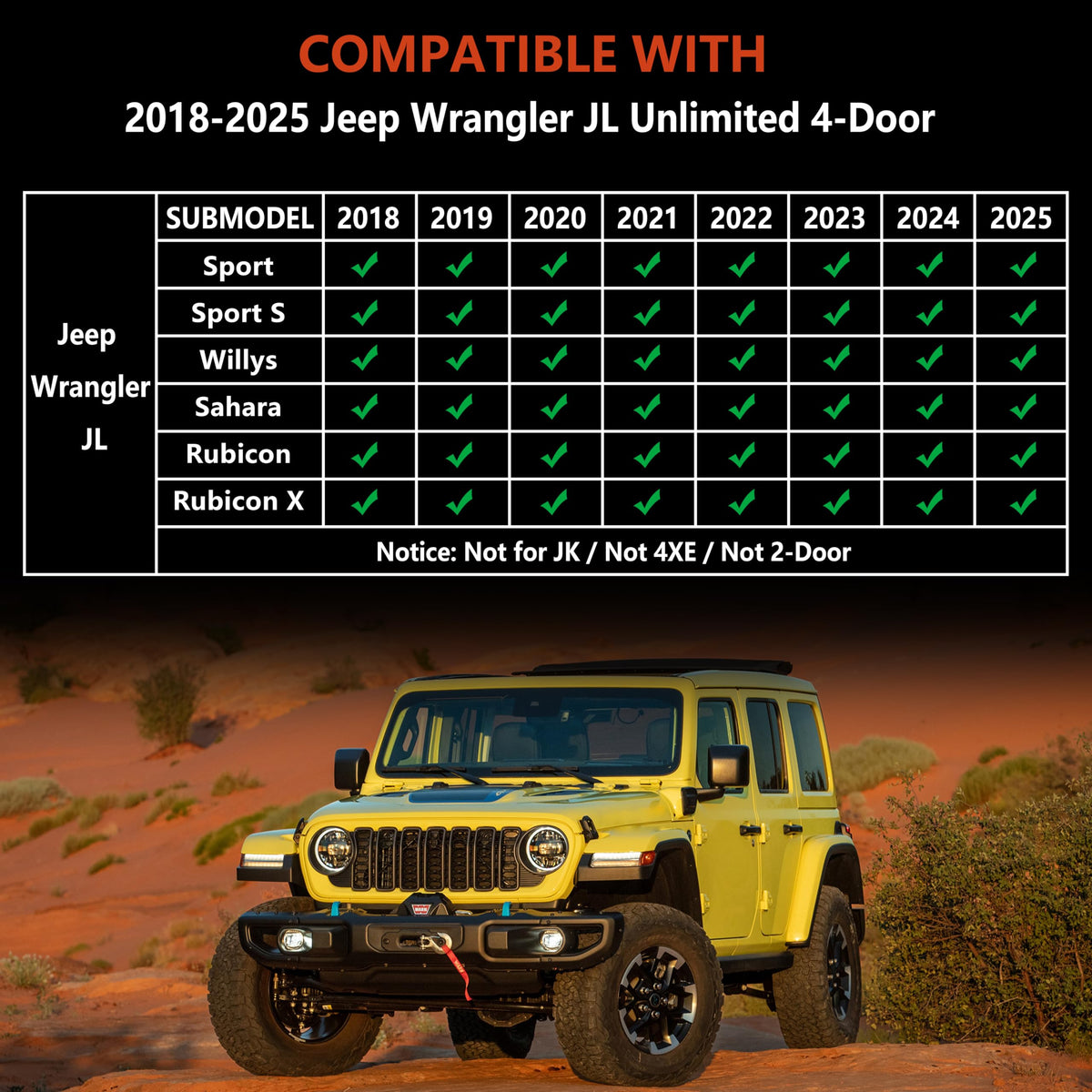 Karpal Floor Mats Fit For 2018-2025 Jeep Wrangler Jl Unlimited 4 Door (Not For Jk/4Xe), Front & 2Nd Row, Tpe All Weather Protect