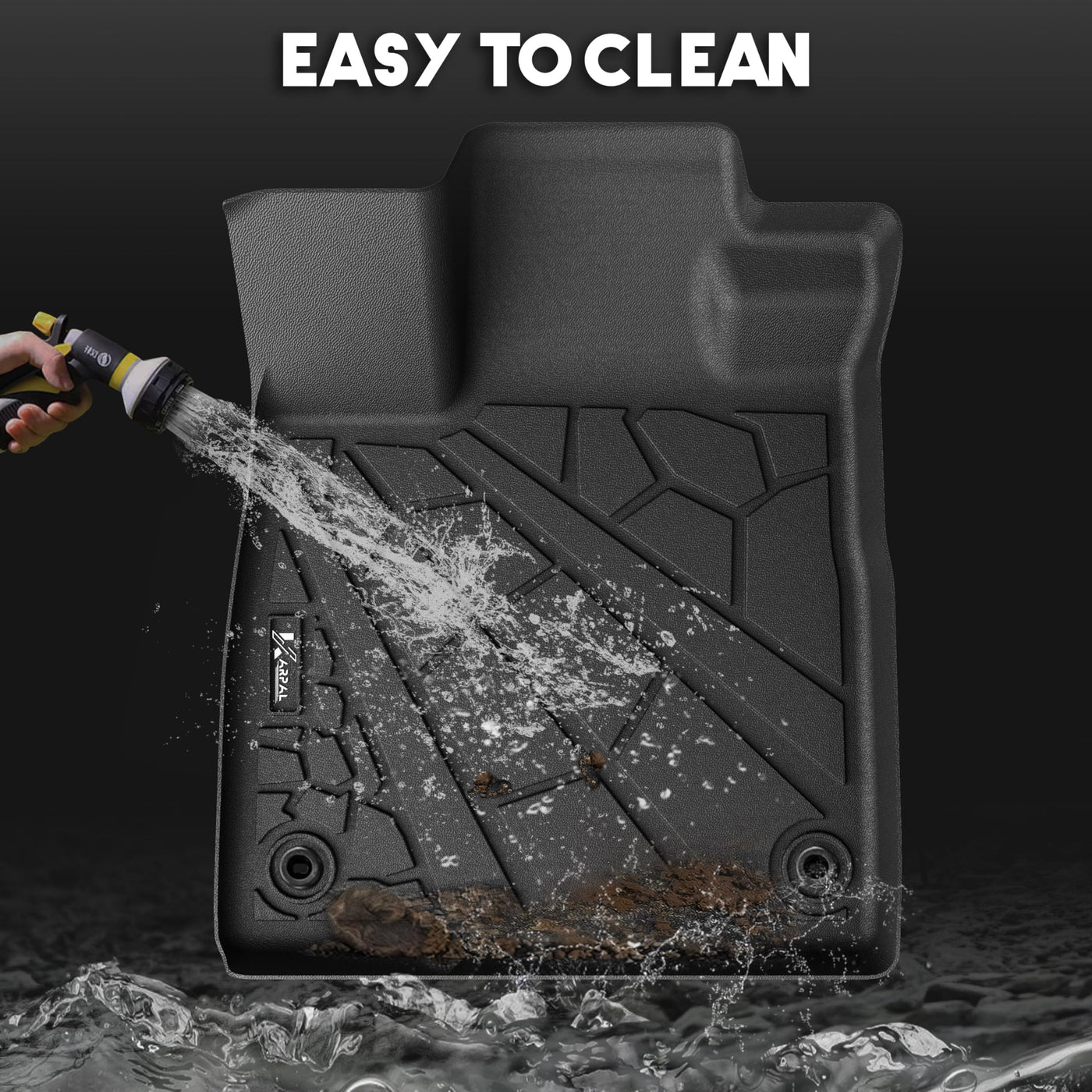Q: How do I clean and maintain these floor mats?A: The KARPAL floor mats are easy to clean; simply wipe them down or remove them for a thorough rinse. Their waterproof design also helps to keep them free from grime, spills, and debris.
