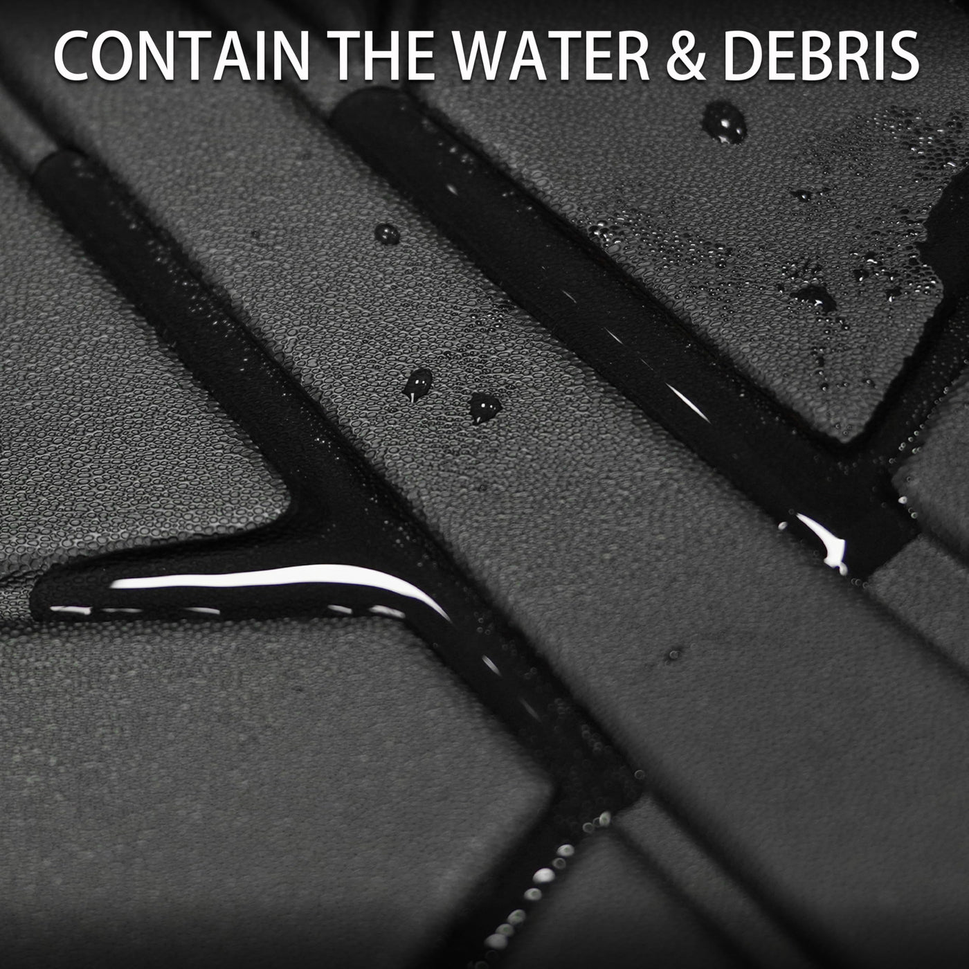 Q: Do these floor mats provide protection against water and mud?A: Yes, the KARPAL floor mats feature a three-dimensional flower-patterned anti-slip design that effectively prevents rainwater, mud, and other liquids from penetrating the vehicle's interior.