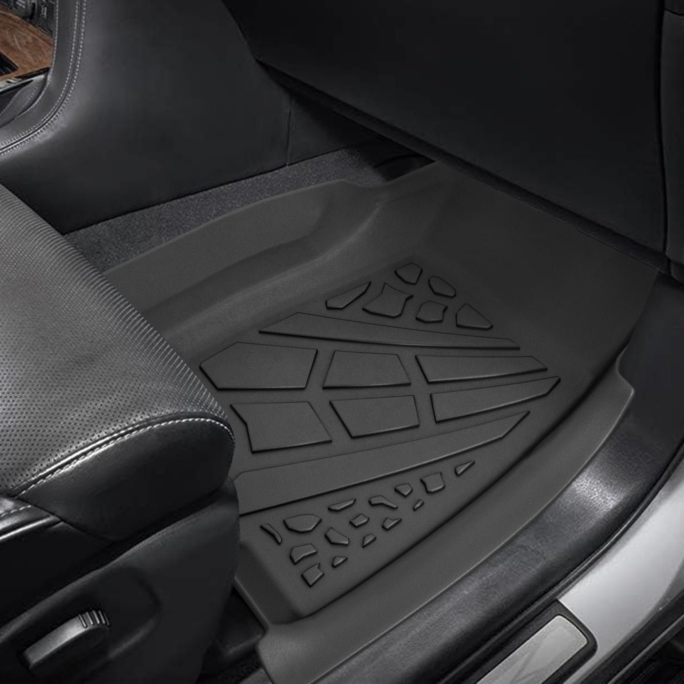 Q: Do these mats provide any protection against water and mud?A: Yes, the KARPAL floor mats feature a 3D patterned anti-slip design that effectively prevents water, mud, and other liquids from entering your vehicle's interior, helping to keep it clean and extend the lifespan of your car's carpet.