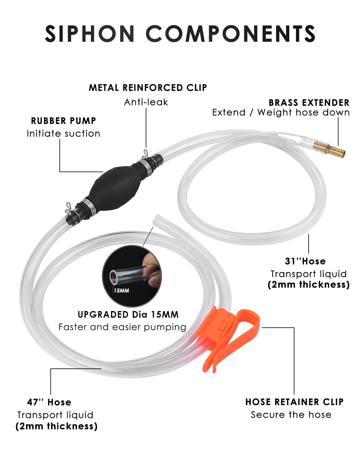 KATUMO Siphon Pump, 2 Pack Enlarged Caliber Gasoline Siphon Hose Fuel Transfer Hand Pump for Gasoline, Oil, Diesel & Water with