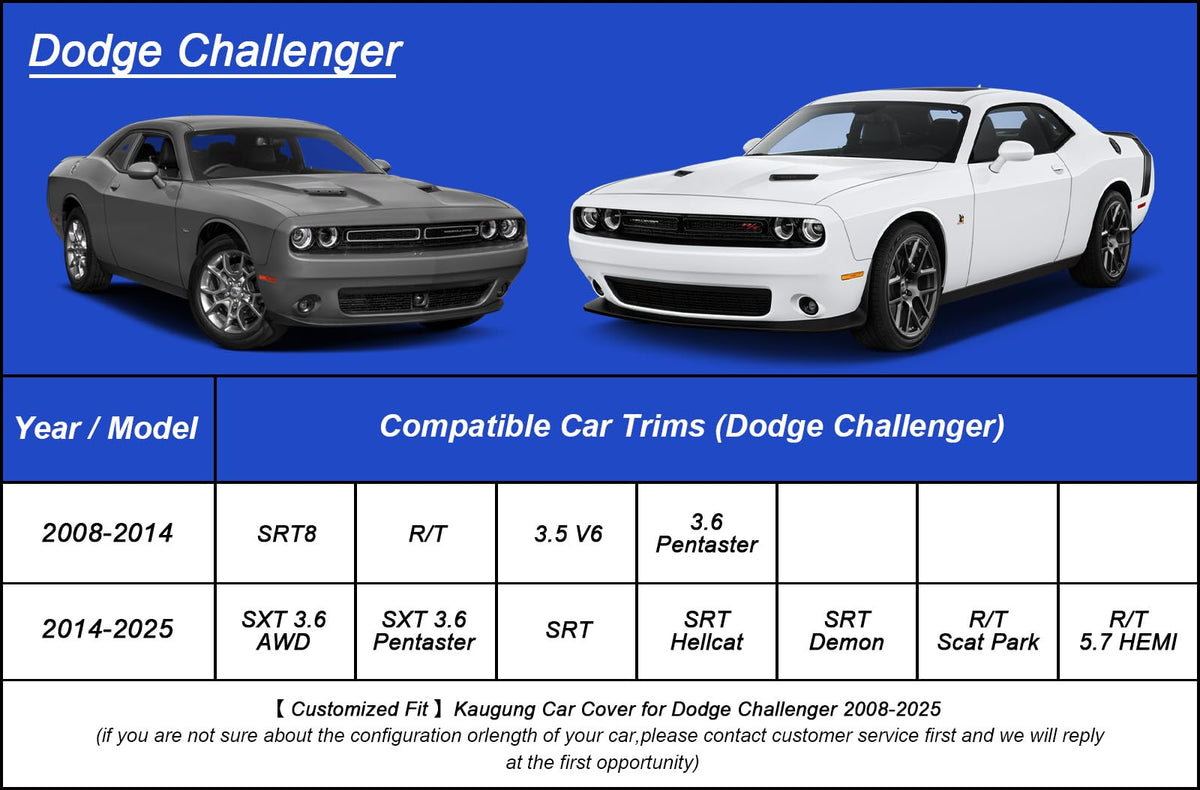 Kaugung Car Cover Waterproof Custom Fit Dodge Challenger(2008-2025), Full Exterior Cover For Automobiles Lightweight Resistant O