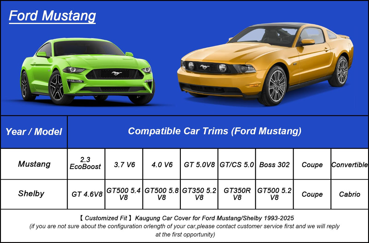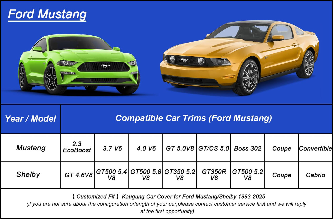 Kaugung Car Cover Waterproof Custom Fit Ford Mustang(1993-2025), Full Exterior Cover For Automobiles Lightweight Resistant Outdo