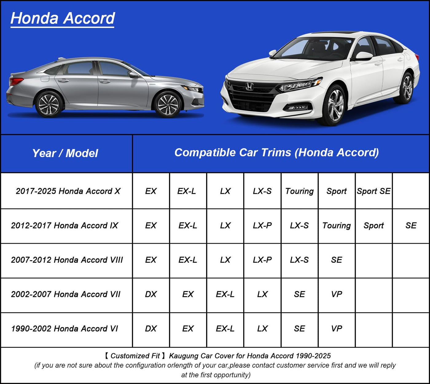 Kaugung Car Cover Waterproof Custom Fit Honda Accord (1990-2025), Full Exterior Cover For Automobiles Lightweight Resistant Outd