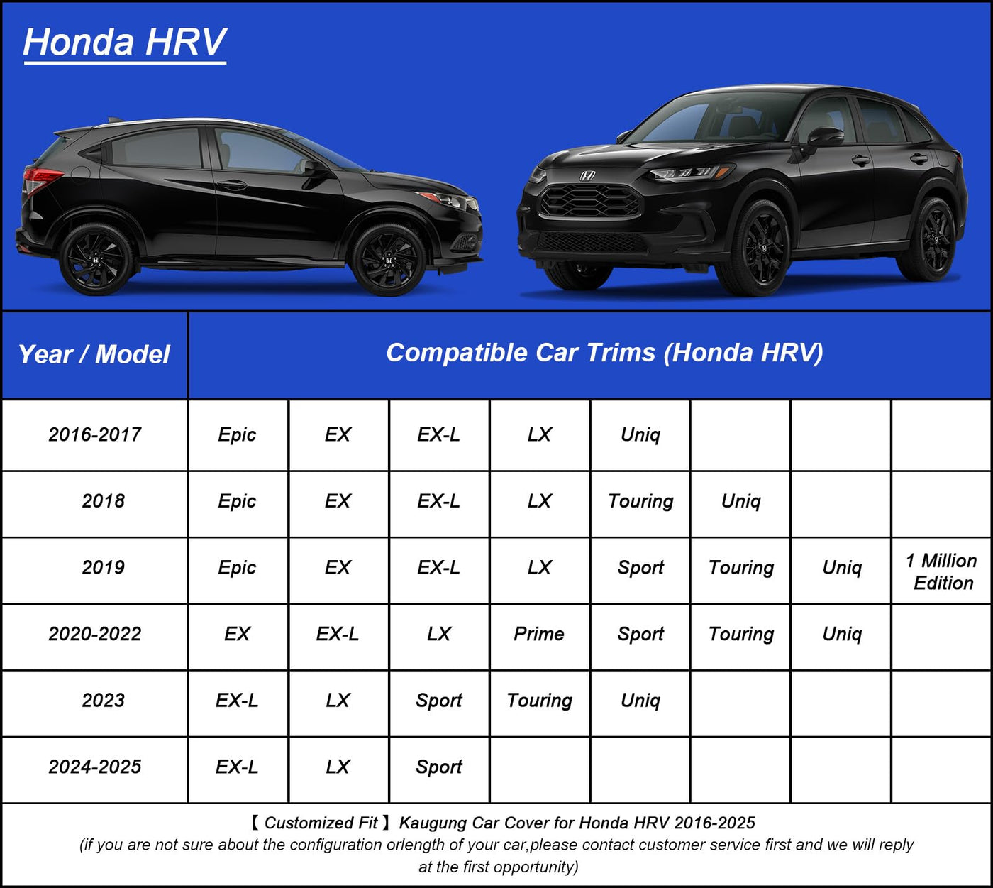 Kaugung Car Cover Waterproof Custom Fit Honda Hrv(2016-2025), Full Exterior Cover For Automobiles Lightweight Resistant Outdoor