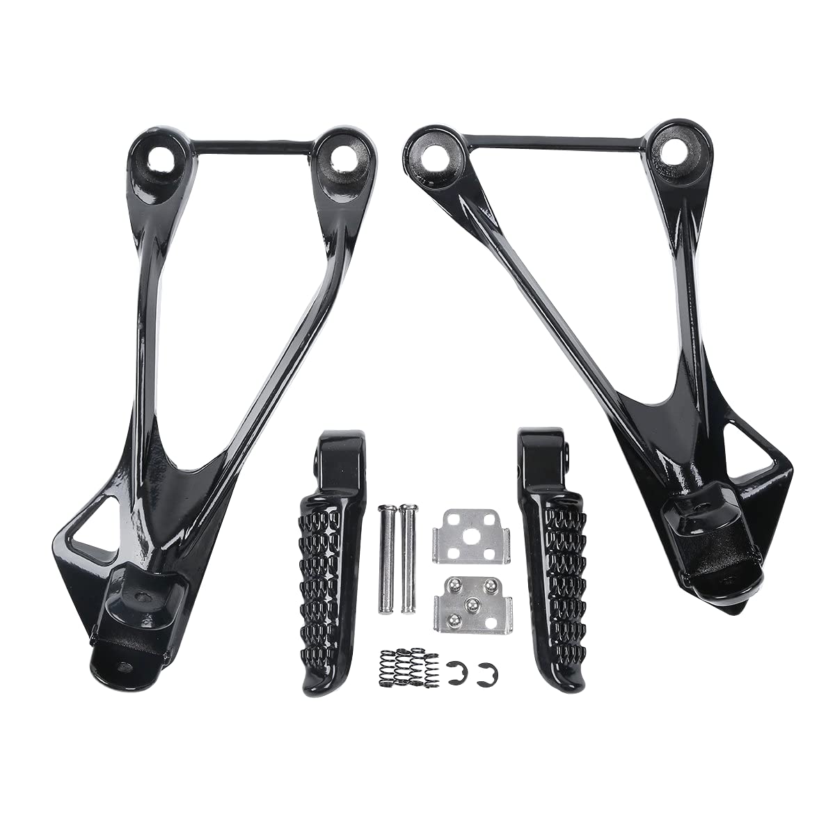 Q: What is the color of these foot peg brackets?A: The foot peg brackets are available in a sleek black color, providing a stylish look that complements the Kawasaki Ninja models.