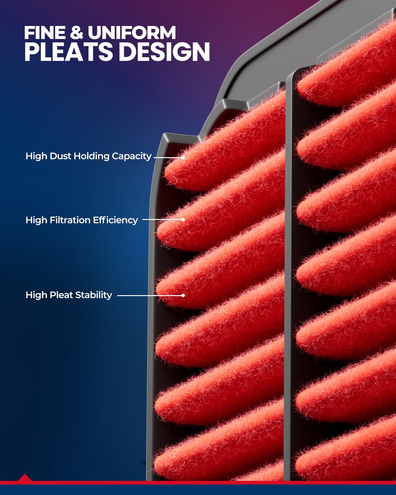 • Q: What is the filtration efficiency of the KAX air filter? A: The KAX Premium Engine Air Filter boasts a 99% filtration efficiency, effectively filtering out fine particles such as dust, soot, pollen, and water droplets to keep your engine running smoothly.