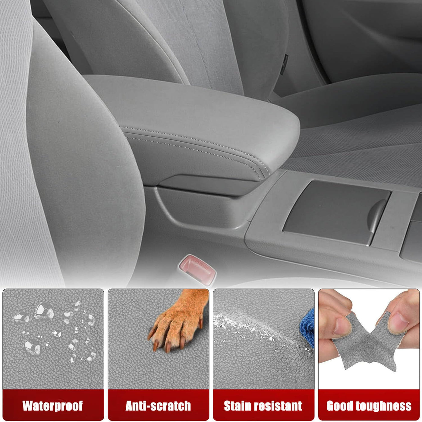 Description: ? Brand new in package (never been used or installed) ? Made by high quality microfiber leather (not genuine leather) ? The listing is for the leather skin part only, you need to reuse your OEM hardware ? Need to remove the old upholstery skin and install the new one ? Direct Fit to your specific car. Easy installation with no drilling ? Pictures are taken by real product Specification:? Material: Microfiber leather? Product size (inches): 15.21 x 6.63 x 3.9? Product weight (ounces): 4.94? Color: Gray? Special feature: Waterproof Installation guide: 1) Disassemble a console cover and tear off an original leather(dont remove the sponge 2) Brush glue on the inside edges of the lid 3) Wait for 5 mins, the glue wont stick your hand. You can start to stick an item from the rear intermediate line 4) Cut a few holes at the recess to stick up convenient 5) Glue all the edge of cover Package included:? One piece console lid armrest cover skin Remark? Please check your vehicle type. Thank you for your kind understanding!? Please do not hesitate to contact us if you have any issue for those products. We are glad to answer any questions!