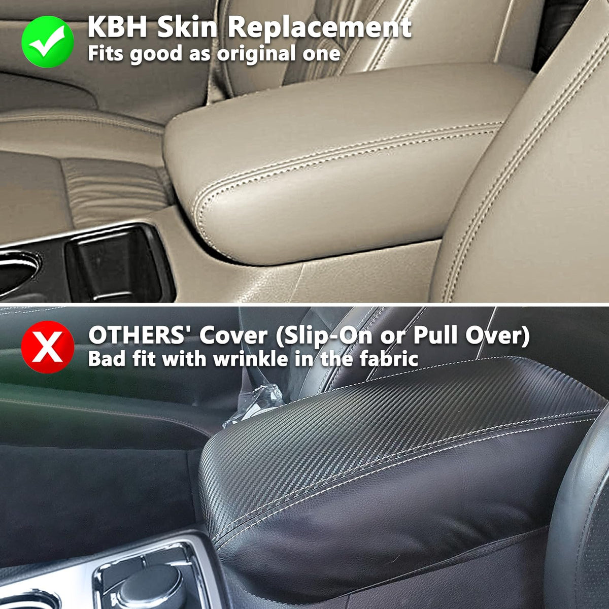 KBH Center Console Armrest Cover Upholstery for Jeep Grand Cherokee & Dodge Durango 2011-2020, Vinyl Leather Middle Console Repl