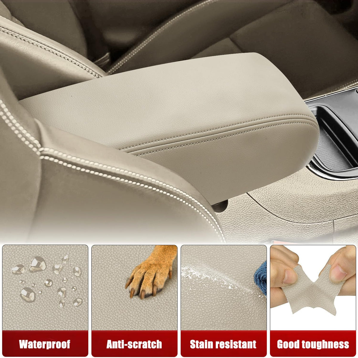 Description: ? Brand new in package (never been used or installed) ? Made by high quality microfiber leather (not genuine leather) ? The listing is for the leather skin part only, you need to reuse your OEM hardware ? Need to remove the old upholstery skin and install the new one ? Direct Fit to your specific car. Easy installation with no drilling ? Pictures are taken by real product Specification:? Material: Microfiber leather? Product size (inches): 15.6 x 6.05 x 5.27? Product weight (ounces): 5.22? Color: Light Frost Beige Tan? Special feature: Waterproof Installation guide: 1) Disassemble a console cover and tear off an original leather(dont remove the sponge 2) Brush glue on the inside edges of the lid 3)Wait for 5 mins, the glue wont stick your hand. You can start to stick an item from the rear intermediate line 4) Cut a few holes at the recess to stick up convenient 5) Glue all the edge of cover Package included:? One piece console lid armrest cover skin Remark:? Please check your vehicle type. Thank you for your kind understanding!? Please do not hesitate to contact us if you have any issue for those products. We are glad to answer any questions!
