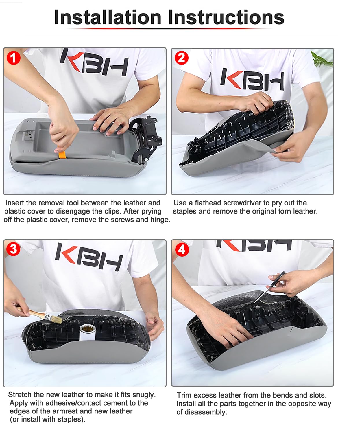 Description: ? Brand new in package (never been used or installed) ? Made by high quality microfiber leather (not genuine leather) ? The listing is for the leather skin part only, you need to reuse your OEM hardware ? Need to remove the old upholstery skin and install the new one ? Direct Fit to your specific car. Easy installation with no drilling ? Pictures are taken by real product Specification:? Material: Microfiber leather? Product size (inches): 15.21 x 6.63 x 3.9? Product weight (ounces): 4.94? Color: Black? Special feature: Waterproof and Scratchproof Installation guide: 1) Disassemble a console cover and tear off an original leather(dont remove the sponge 2) Brush glue on the inside edges of the lid 3)Wait for 5 mins, the glue wont stick your hand. You can start to stick an item from the rear intermediate line 4) Cut a few holes at the recess to stick up convenient 5) Glue all the edge of cover Package included:? One piece console lid armrest cover skin Remark? Please check your vehicle type. Thank you for your kind understanding!? Please do not hesitate to contact us if you have any issue for those products. We are glad to answer any questions!