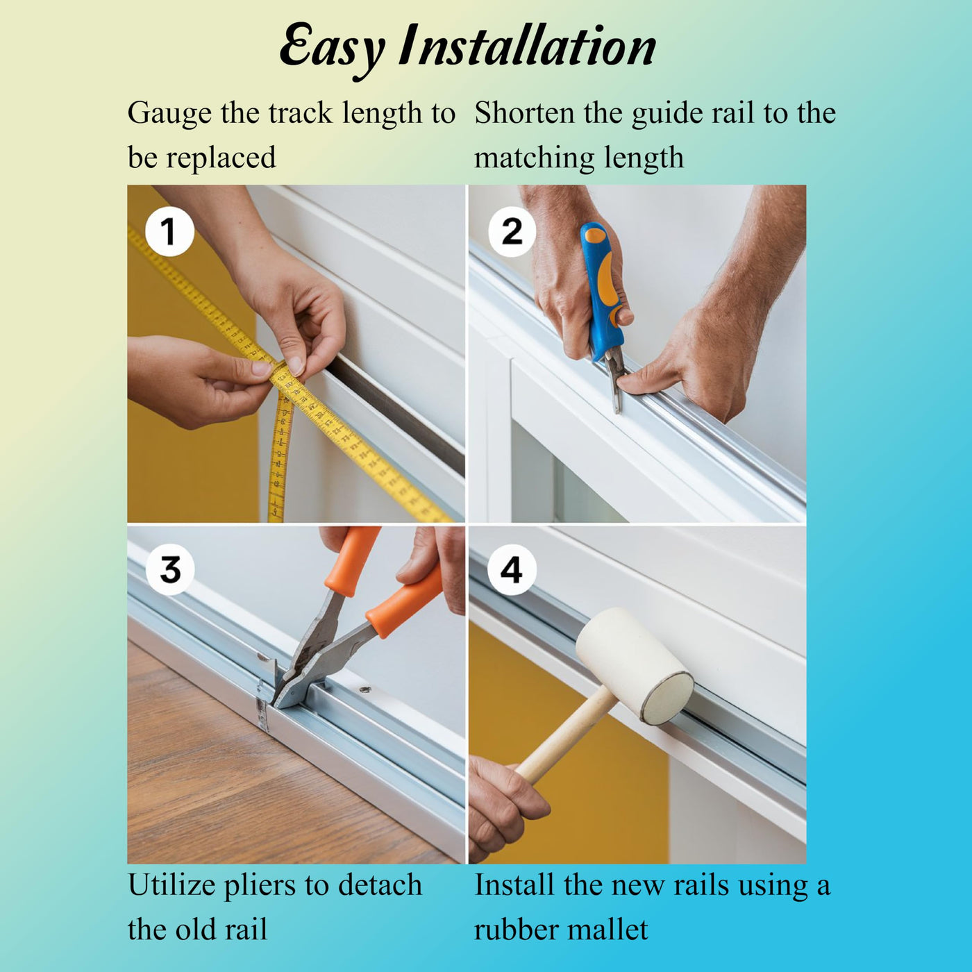 Q: How do I install the vinyl sliding door track?A: Installation is simple. You can easily replace your old track by cutting the replacement sliding door rail to the desired length with a hacksaw and then snapping it into place.