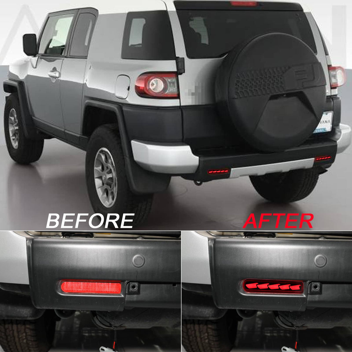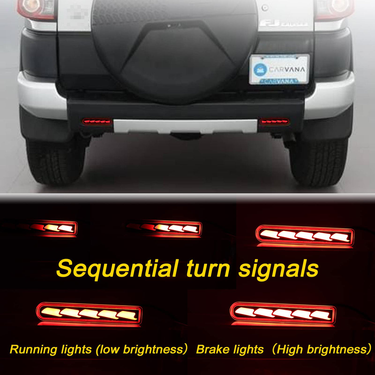 Keegtbox Red Rear Bumper Fog Brake Tail Light Sequential Flash Turn Signal Lamps Compatible With Toyota Fj Cruiser 2007-2021 Accessories