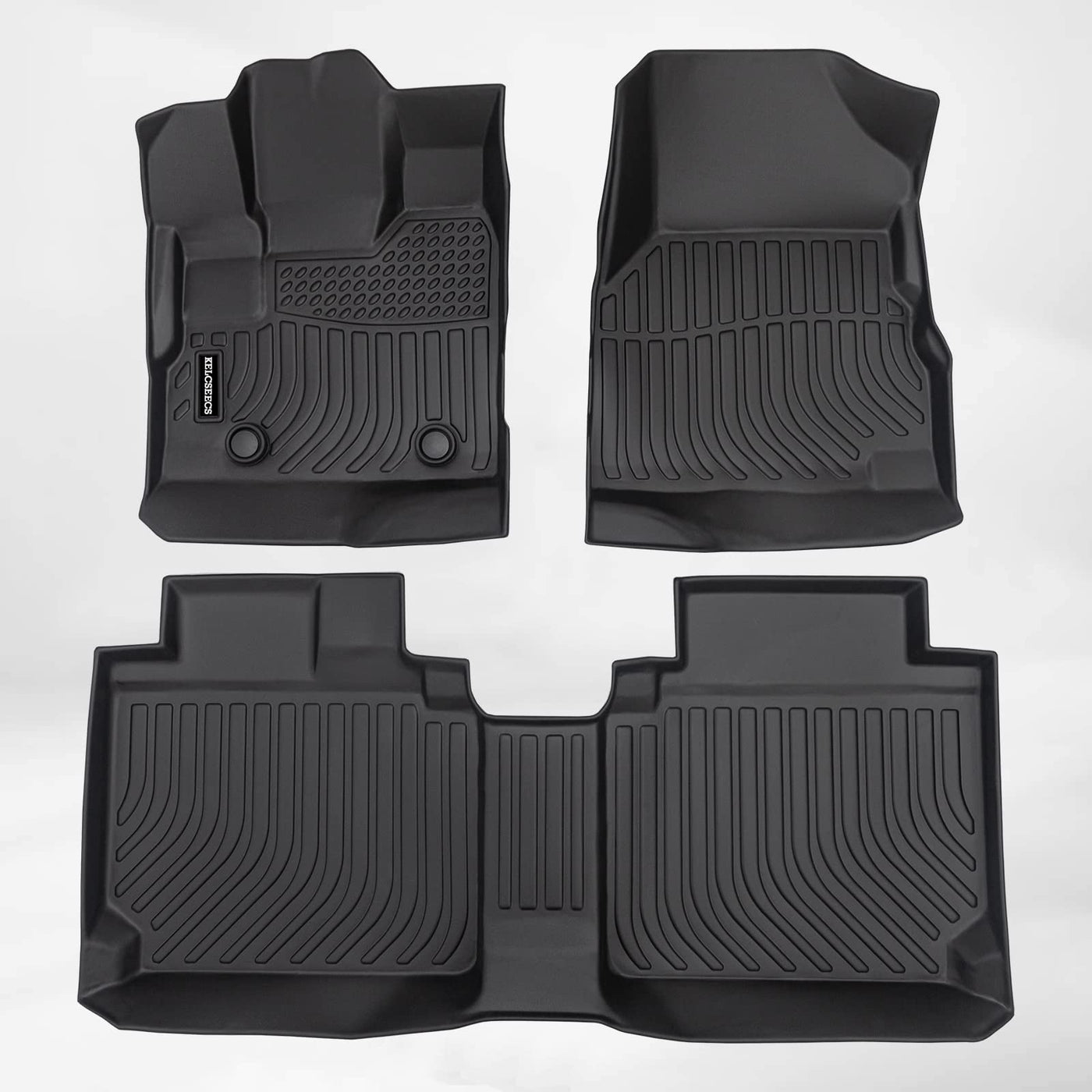 Q: How do I clean the KELCSEECS floor mats?A: Cleaning the KELCSEECS floor mats is easy. Simply rinse them with water and wipe them down to remove dirt and debris, thanks to their 3D textured design that helps intercept dirt.