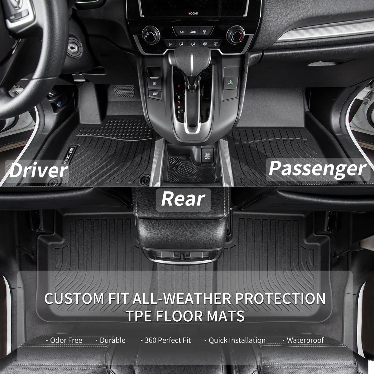 Kelcseecs All Car Mat Adopts Tpe Material Blister Molding To Manufacture Floor Mats. Different From Traditional Compression Molding Floor Mat,This Tpe Car Mat Shows Advantages Of Both Rubbery Materials And Plastic Materials Thus Having More Strength, Resilience, Durability And Elasticity. It Has More Outstanding Thermal Properties And Material Stability When Exposed To An Extreme Temperature,Even In Extremely Hot Weather Or Stay Resilient In Extremely Cold Weather. The Kelcseecs Not Only Pursuit Superior Protection For Your Vehicle, But Also Enhances The Overall Appearance Of Your Cars Interior Comes With Its Modern Design Textured Surfaces.Each Kelcseecs Floor Mat Is Custom Fit.We Scan The Interior Of Each Car That Will Match The Interior Of Your Car Perfectly. In Addition, Every Floor Mat Has A Raised Containment Edge Protecting Your Vehicle From All Kinds Of Mess. You Can Finish Cleaning Up The Floor Liners Within Few Minutes.