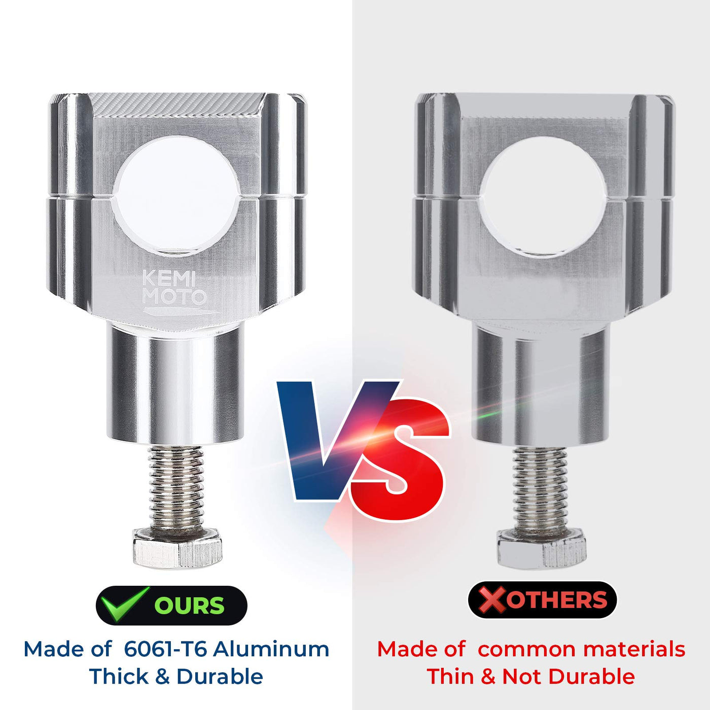 Q: What material are the KEMIMOTO Motorcycle Handlebar Risers made of?A: The KEMIMOTO Motorcycle Handlebar Risers are forged from high-quality 6061 T-6 aluminum, ensuring superior strength and durability for motorcycle applications.