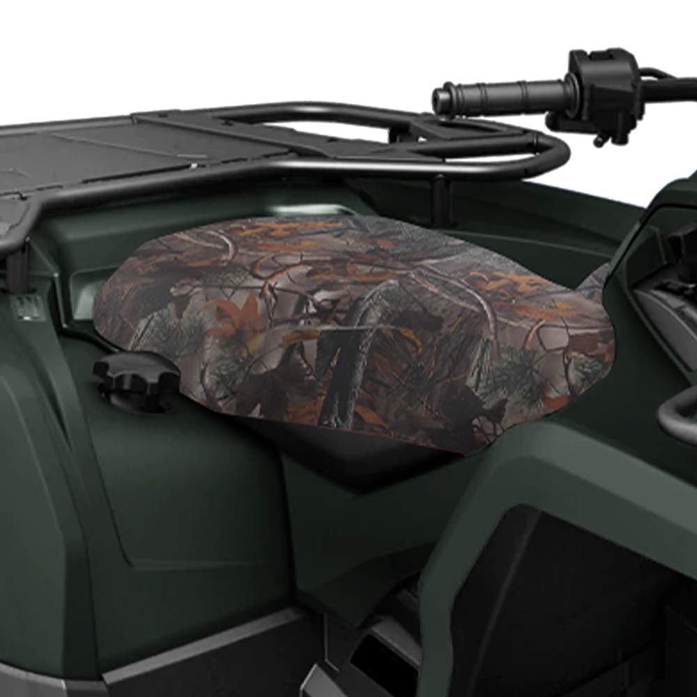 Q: Which ATV models are compatible with these seat covers?A: These seat covers are universally compatible with various models including Sportsman, Rancher, Foreman, Scrambler, and Kodiak ATVs.
