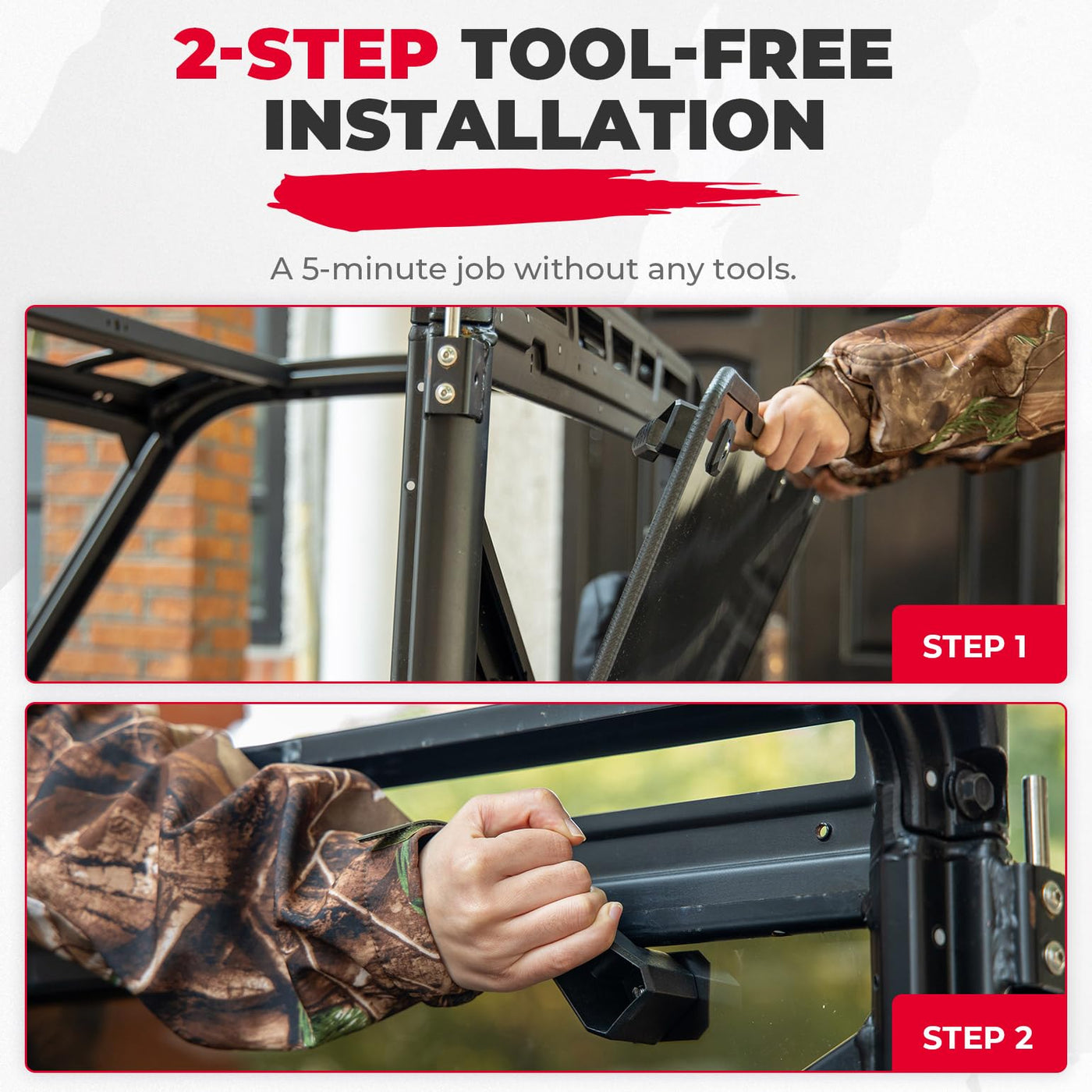 Wide Compatibility: This KEMIMOTO anti-UV tinted rear window is compatible with 2017-2025 Polaris Ranger 1000 XP/ Crew, 2020-2025 Polaris Ranger 1000/ Crew, 2013-2019 Polaris Ranger 900 XP/ Crew, 2015 Polaris Ranger 570 Full Size/ Crew, 2016 Polaris Ranger XP 570/ Crew. Pls see more fitment details in the description | Hard-Coated PC Material: Double-sided PC resists daily wear, keeping your view clear all year round. The UTV rear window made of this material is 250 times stronger than glass, designed for the extreme outdoor environment | Sun Blocker and Noise Reduction: If you're looking for a better option than a clear rear window, this tinted back window is perfect. It's UV-resistant and can block up to 99% of the sun's harmful rays, protecting your skin from sun damage, especially during the summer. The rear windshield comes with sealing rubber that reduces noise while riding, preventing any rattle or squeaking | Tool-free Installation: Comes with pre-installed rubber strips. No need to install that by yourself with pain. No need for tools or drilling. 2-step installation. Just position the back windshield correctly and secure it by rotating the clamps | Good Protector: The back window panel does a great job of keeping mud, dust, rain, wind and bugs out of your cab. Rubber seal works great for reducing engine and road noise, and you can enjoy loud and immersive music from in-cab speakers