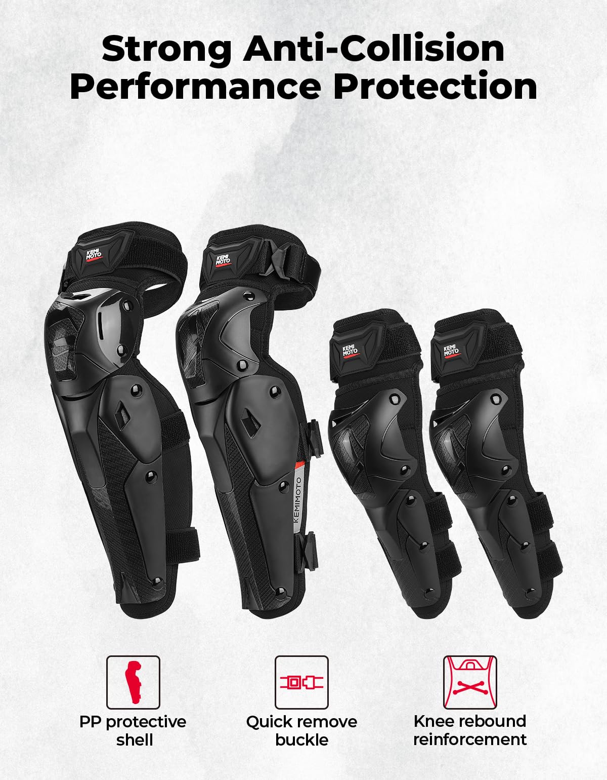 KEMIMOTO Motorcycle Knee-and-Shin Guards Elbow Pads for Men 4Pcs Powersports Protective Motocross/Racing/Dirt Bike Gear Rodiller