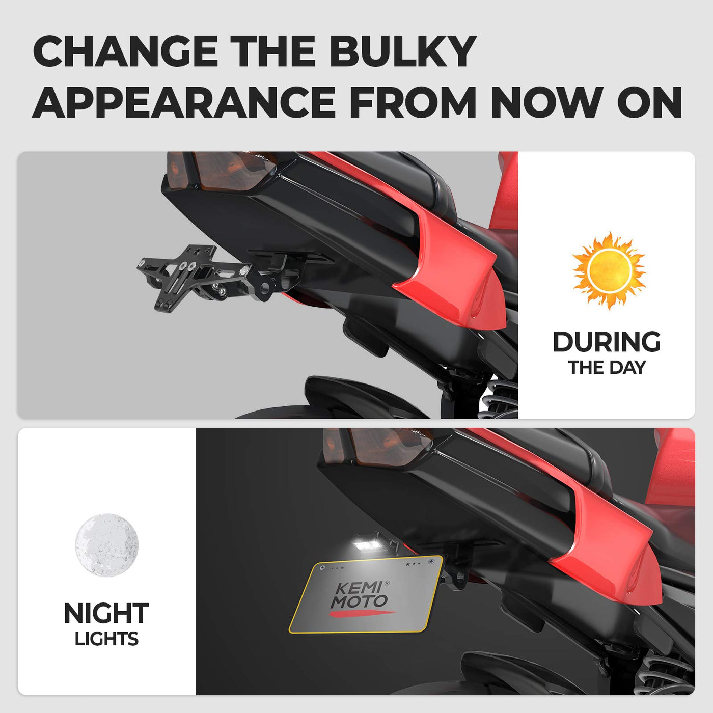 Q: Does the kit include a light for the license plate?A: Yes, the KEMIMOTO Fender Eliminator Kit comes with a built-in license plate LED light, eliminating the need for a separate purchase and ensuring your license plate is clearly illuminated at night.