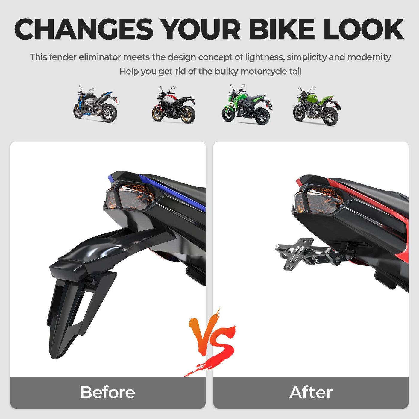 Q: Is the KEMIMOTO Fender Eliminator Kit compatible with my motorcycle?A: The KEMIMOTO Fender Eliminator Kit is designed to fit a wide range of motorcycles, but it is not compatible with certain models including Z1000, YZF-R1, and several others. Please check the fitment list in the product description to ensure compatibility with your specific motorcycle model.