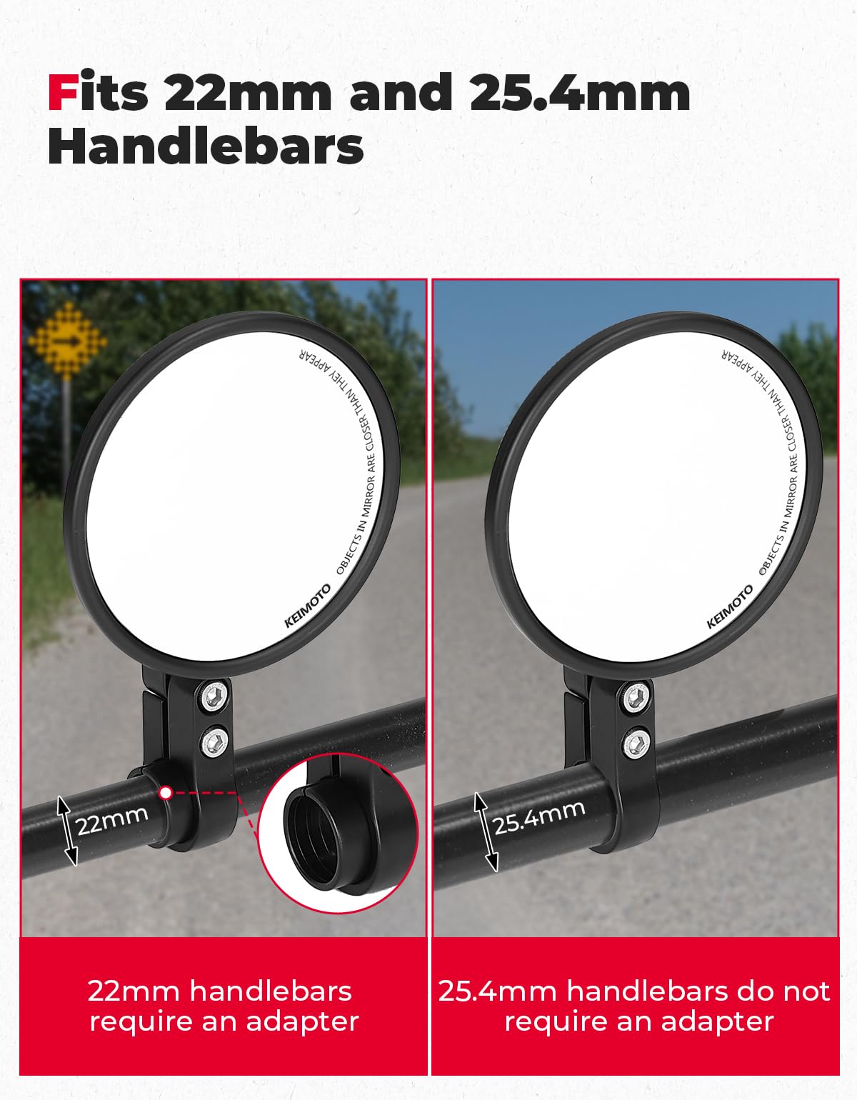 KEMIMOTO Motorcycle Rear View Mirror, Billet Aluminum Bar End Side Mirror for 22mm or 25.4mm Handlebar Diameter with M8 Bolt Com