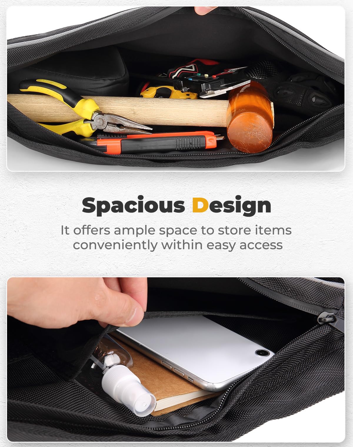 Spacious Storage:Two 5L front pro xp bags are designed to provide generous storage capacity for all your essentials, including phones, wallets, snacks, and first-aid items. They also feature a mesh pocket for additional small items | Water-resistant:The utv door bags are made from water resistant 1680D fabric which offer superior protection compared to those made with 210D, 420D, or 600D materials. It effectively guard against scratches, wear, tear, and dust. Additionally, the bags come with a desiccant to keep your belongings dry and free from moisture | Upgraded PVC zippers:The side door bags equipped with PVC water-resistant zippers covered by a layer of fabric to prevent dust or mud accumulation. This ensures that the interior remains dry and clean | Protection Knee:Upgraded sponge knee pad keeps your knee from beating against the metal door, which you can take out to increase storage space for other items | Simple Installation:You can easily install the KEMIMOTO door bags without needing to remove the door, the installation process easier than same products | Fitment:Compatible with 2020-2024 Polaris RZR PRO XP/ PRO XP 4, RZR PRO R / PRO R 4 / Turbo R / Turbo R 4