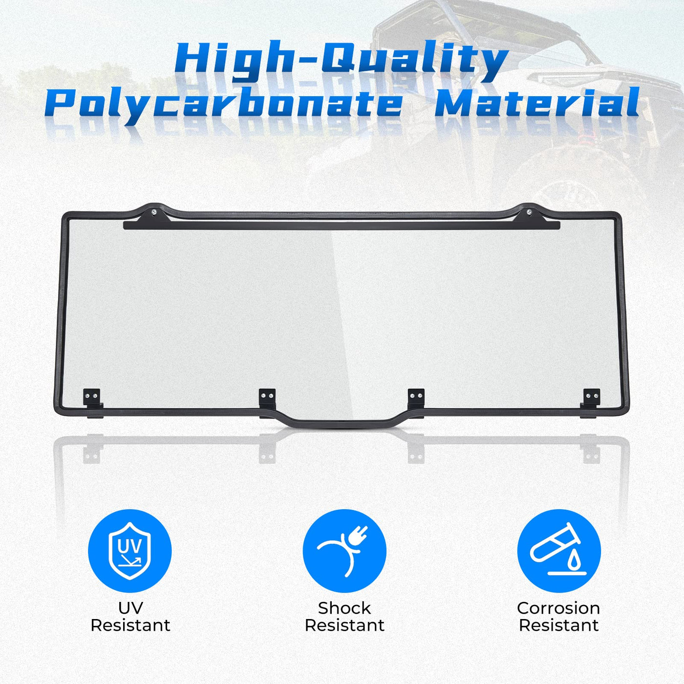 Q: What materials are used in the KEMIMOTO rear window, and how durable is it?A: The KEMIMOTO rear window is constructed from high-quality polycarbonate (PC) material, which is 250 times stronger than glass. It features shock-resistance, shatter-resistance, and corrosion-resistance, making it suitable for various weather conditions, including UV rays, rain, snow, and dust.