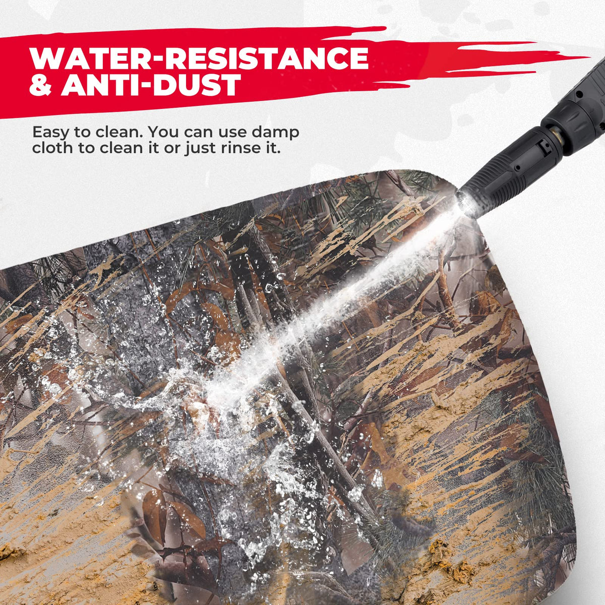?Strong & Durable?This seat cover is made of heavy-duty fabric with a water-resistant backing and exterior coating for maximum weather and abrasion protection.