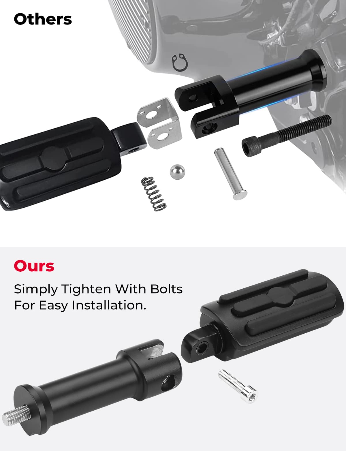KEMIMOTO Upgraded Passenger Foot Pegs with Support Mount Kit for Softail Cruiser Motorcycle, Black, Rear, Metal and Rubber