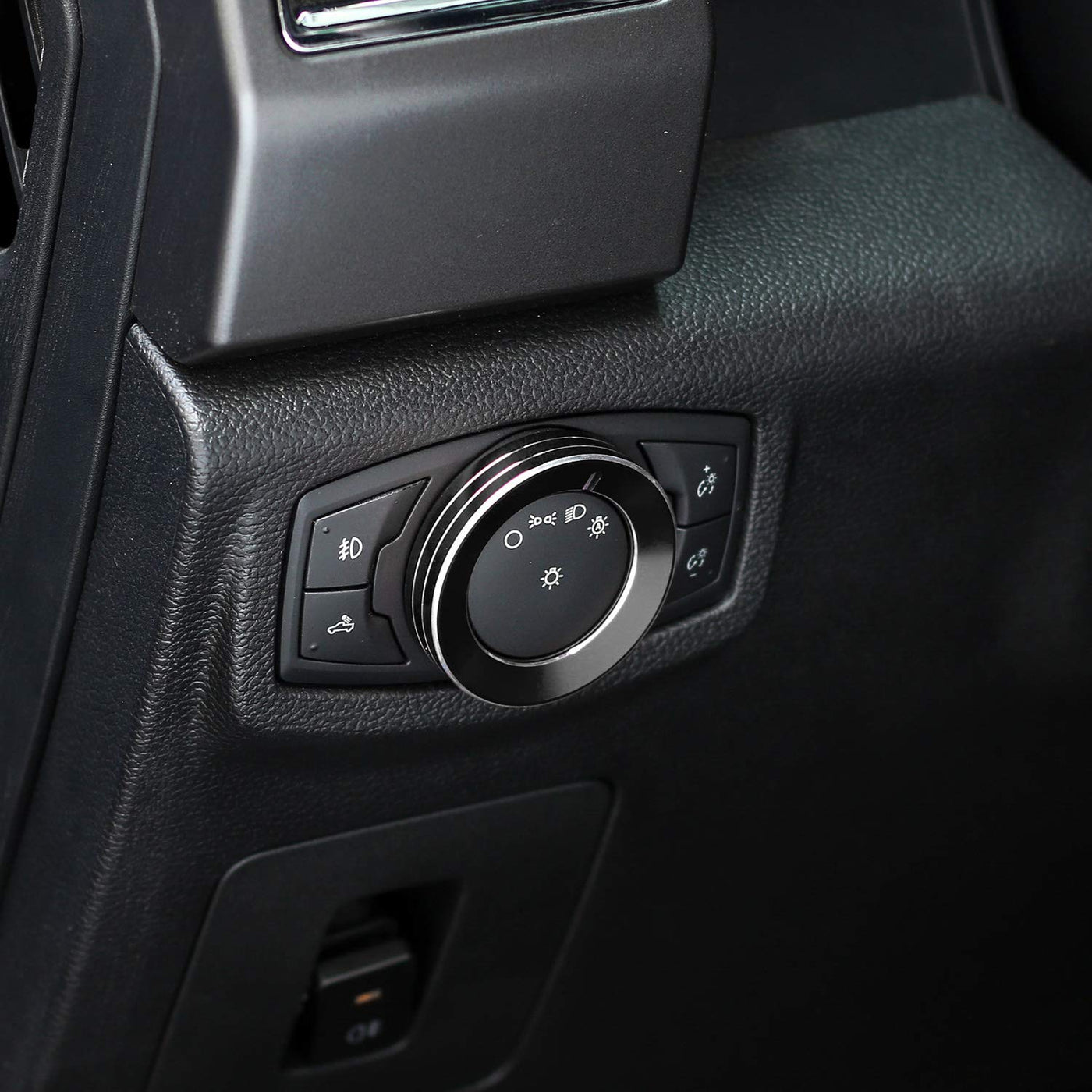 Keptrim For F150 Mustang Headlight Switch Knob Button Trim For Ford F150 Mustang 2015-2020, Black Aluminum, 1Pc