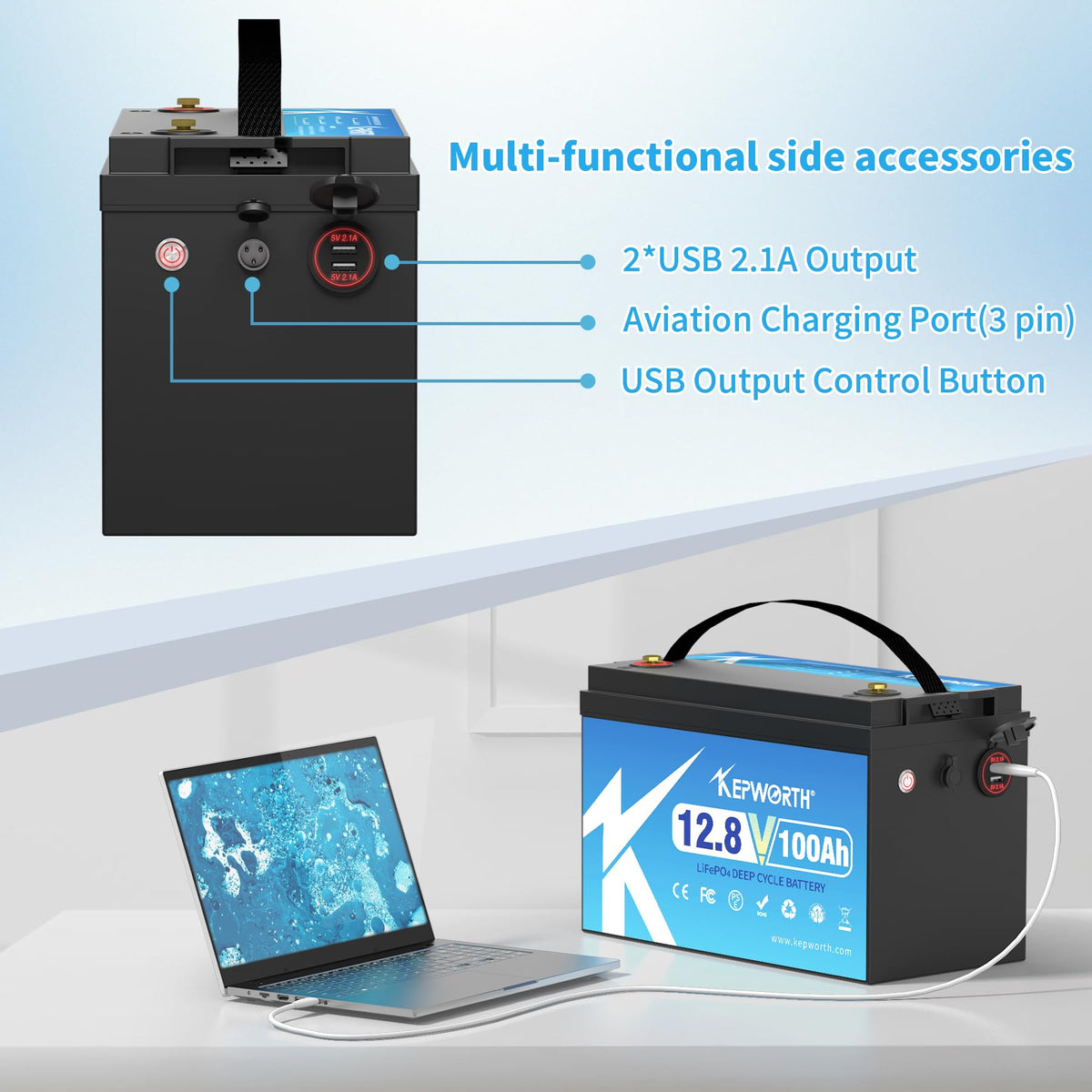 Kepworth 12.8V 100Ah Lifepo4 Battery Group 31, Rechargeable Lithium Batteries With 100A Bms, Up To 4000+ Deep Cycles, Grade A Li