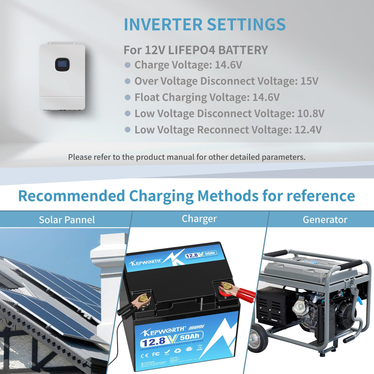 Kepworth 12.8V 50Ah Lifepo4 Battery, Rechargeable Lithium Batteries With 50A Bms, Grade A Lithium Iron Phosphate Battery Cells,