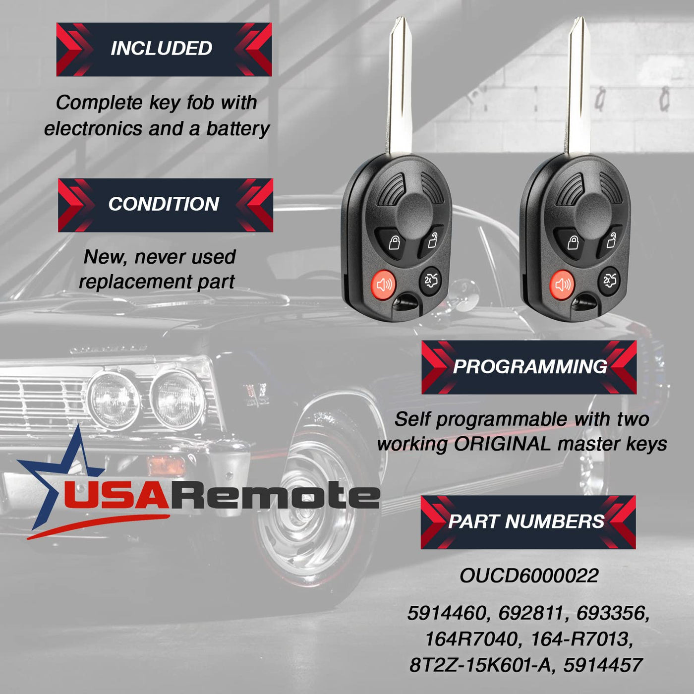Key Fits Ford Edge Escape Expedition Explorer Flex Five Hundred Focus Fusion Mustang Taurus Navigator Keyless Entry Remote Fob (Oucd6000022), Set Of 2 - Guaranteed To Work