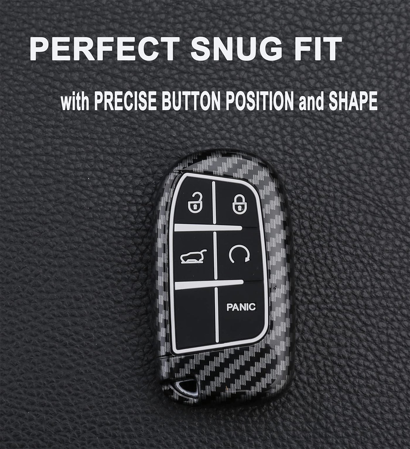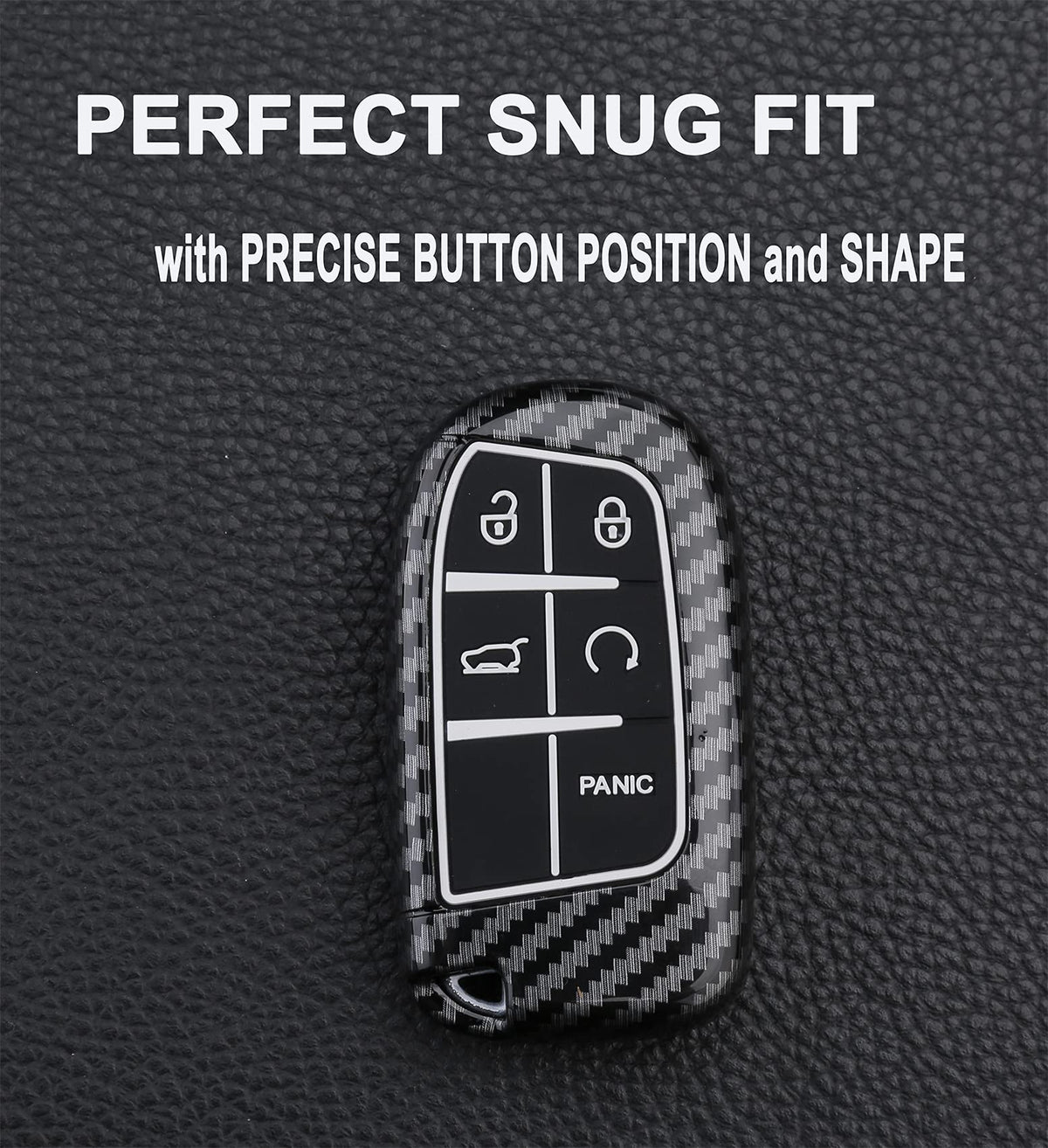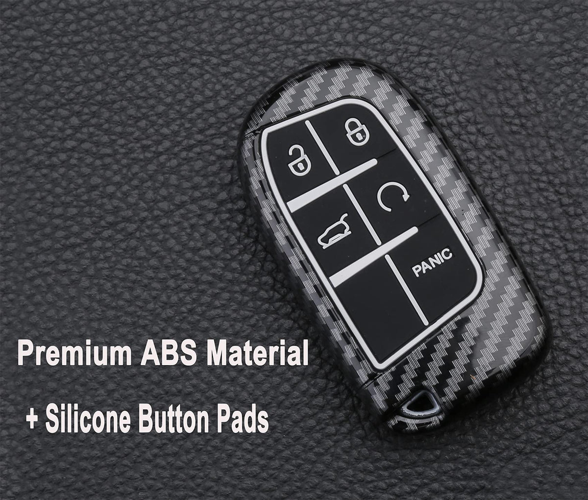 Excellent Accessory For Dodge Jeep Chrysler Car Key Fob: Made Of Premium Abs + Sillicone Rubber, 360 Degree Full Protection, With Carbon Fiber Pattern, Stylish And Durable, Easy To Wipe Off And Clean, Fits Like A Glove With Precise Button Position And Shape, No Signal Affected.