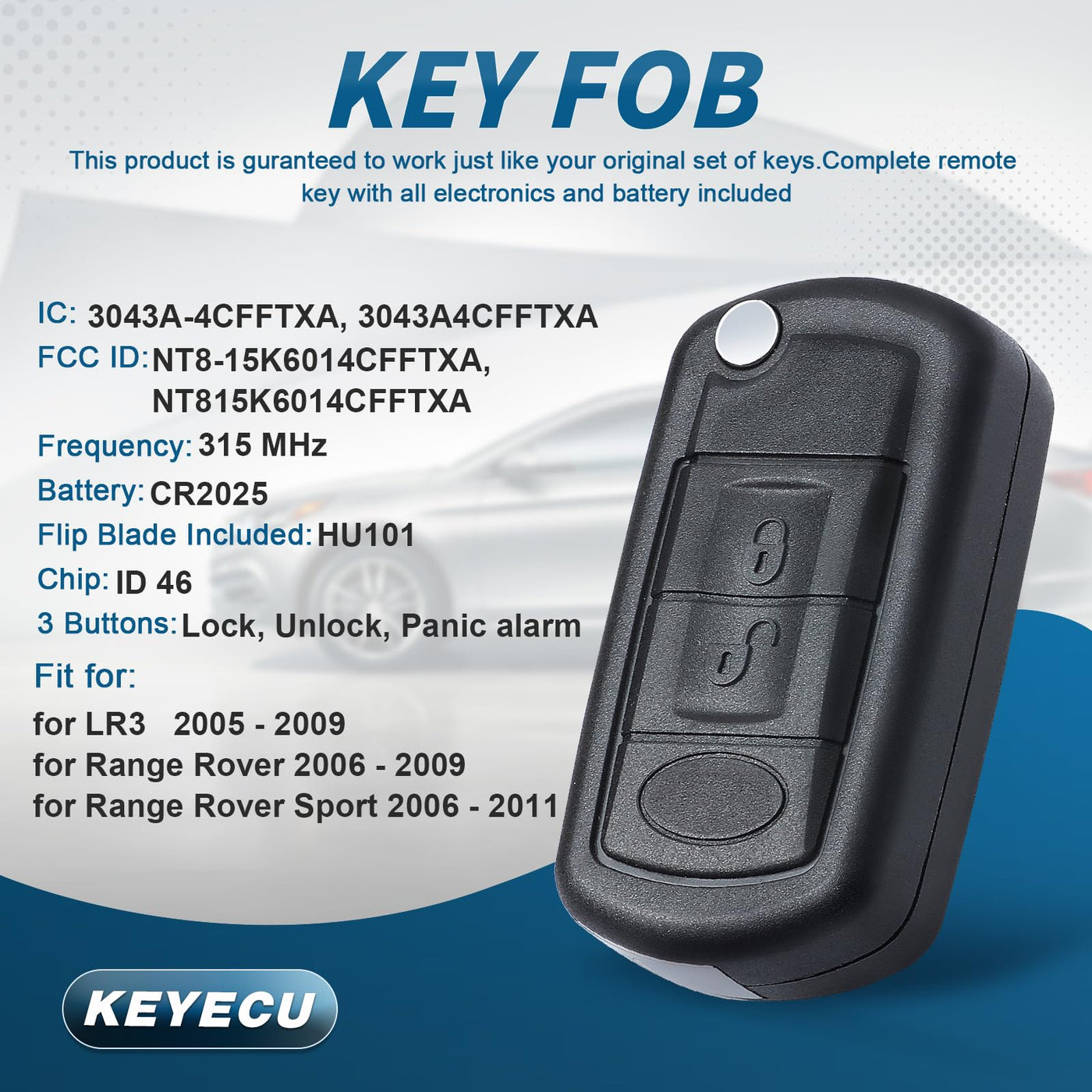 Keyecu Replacement Flip Remote Car Key Fob 315Mhz Pcf7941 For Lr3 Range Rover Sport 2005-2011 Fcc Id:Nt8-15K6014Cfftxa