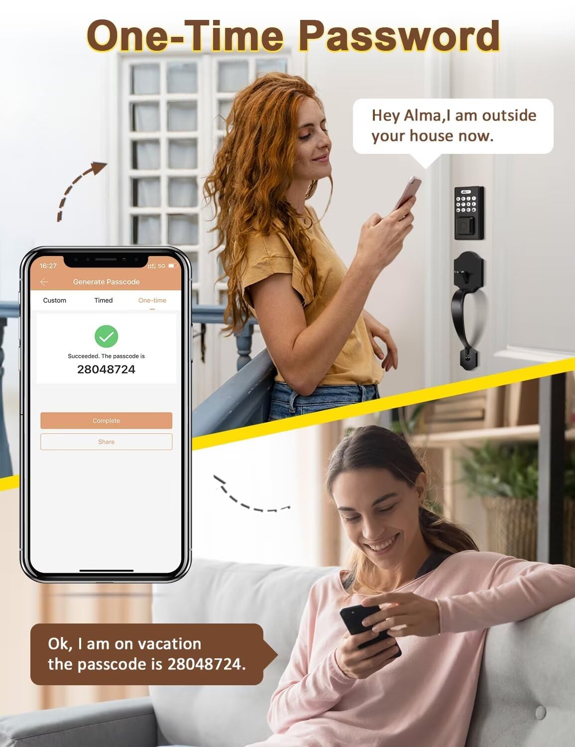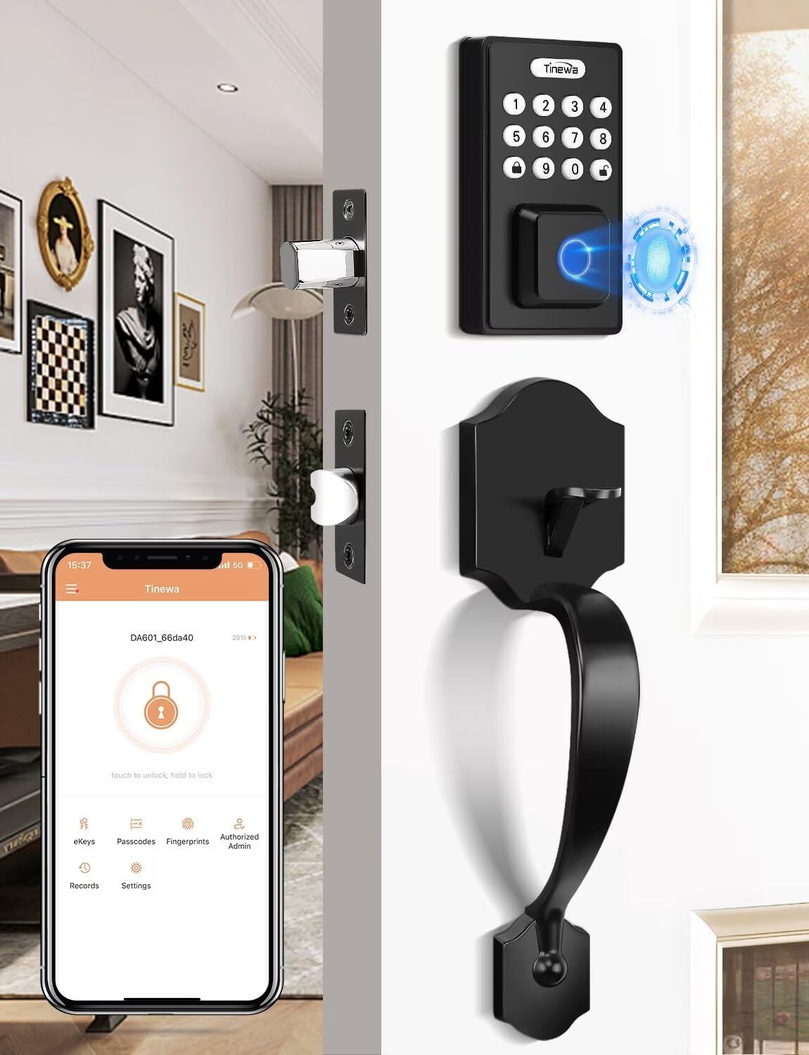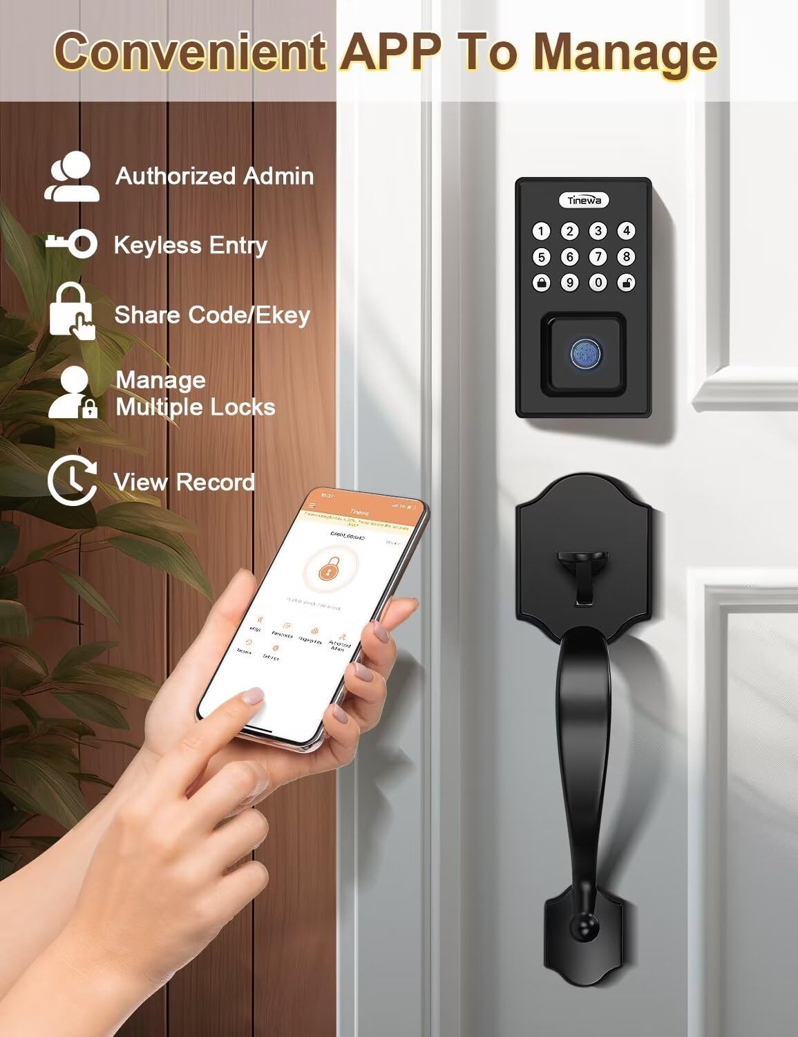 Q: How does the Tinewa Electronic Keypad Deadbolt enhance security?A: The Tinewa Electronic Keypad Deadbolt offers multiple unlocking methods including passcode, fingerprint, APP control, and a physical key. This multi-layered approach ensures enhanced security, allowing you to provide unique access codes for friends and visitors, while also offering a one-time password feature for temporary access.