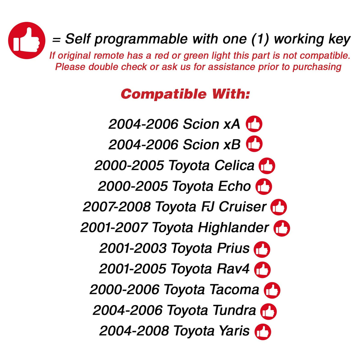 Q: What vehicles are compatible with the KeylessOption 4 Item Bundle?A: The KeylessOption 4 Item Bundle is specifically designed for vehicles that use the HYQ12BBX key fob model. Please check your vehicle's specifications or consult with a professional to ensure compatibility.