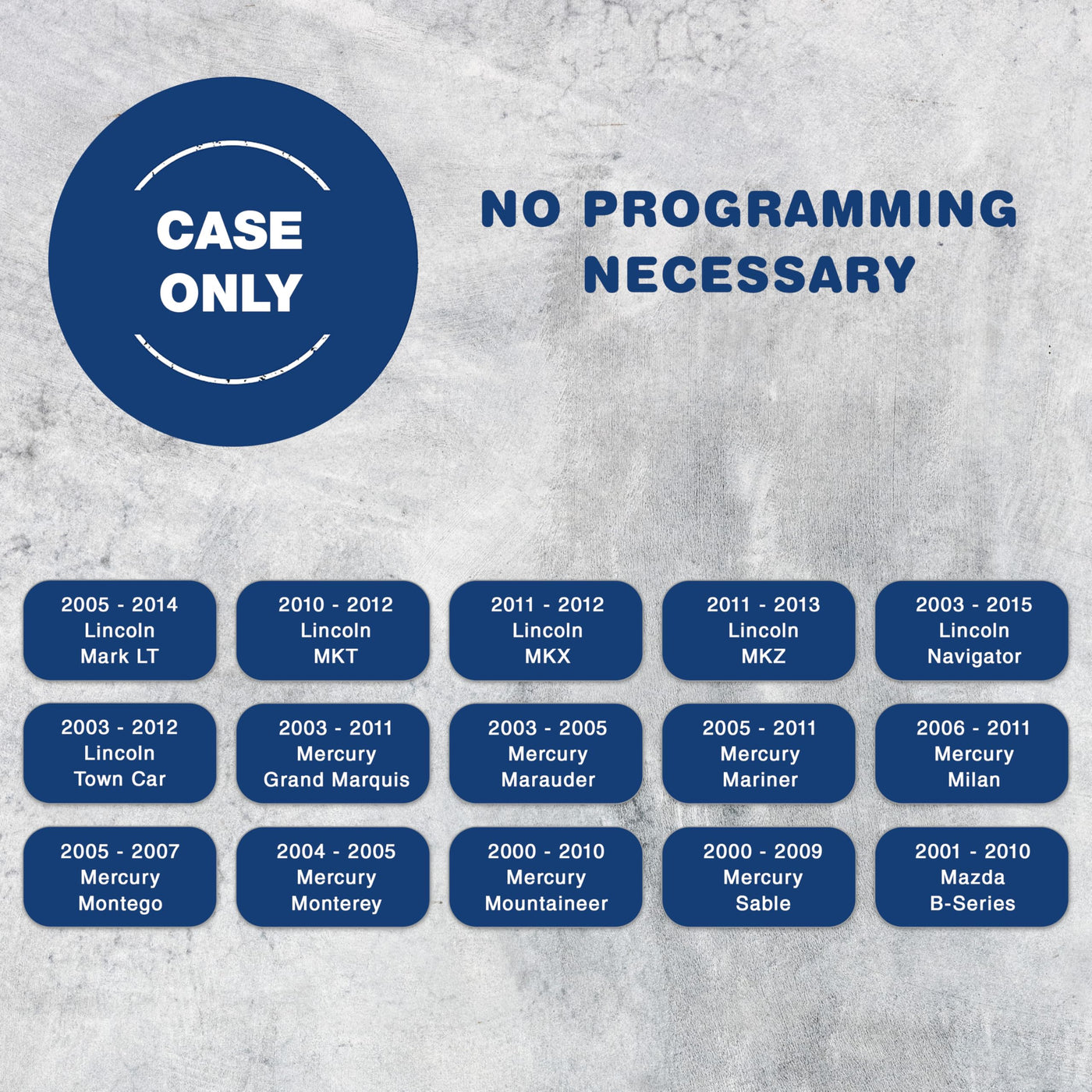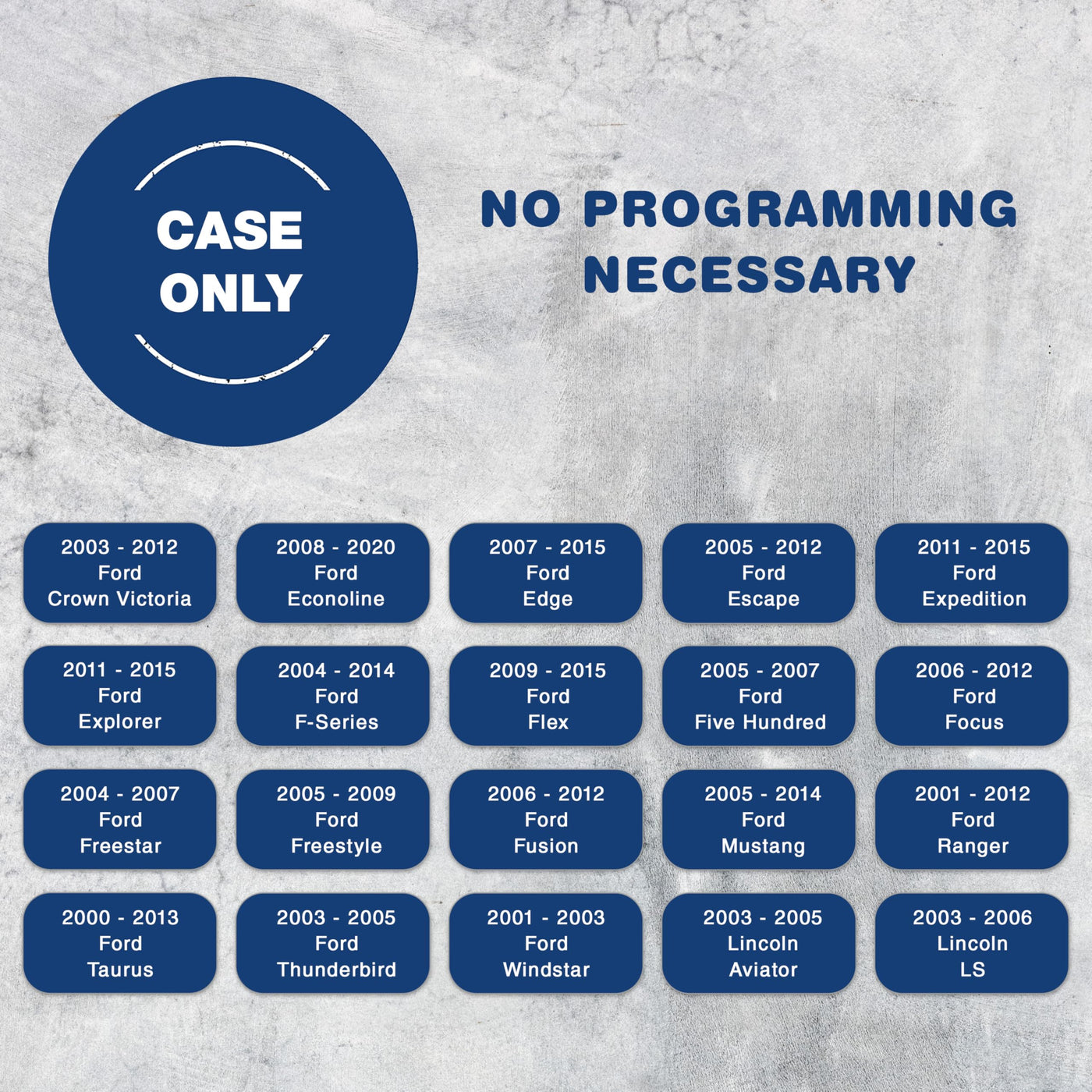 A quick, easy and affordable way to replace a cracked or worn out keyless entry remote key fob case or shell. Replace the outer case or shell instead of the entire assembly with this product. Installation is simple and reprogramming is not required. No electronics or circuit board are included. You must transfer over your original components into this case.