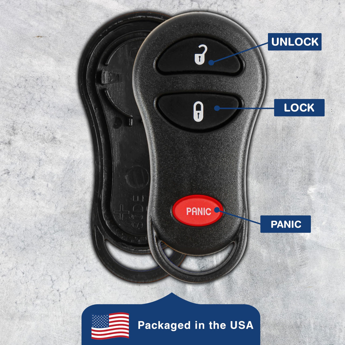 Q: What vehicles are compatible with the KeylessOption Key Fob Cover Case?A: The KeylessOption Key Fob Cover Case is compatible with various models including the Chrysler Caravan, Dodge Ram, and Jeep Cherokee from the years 1999 to 2005. It supports key fob models GQ43VT13T, GQ43VT17T, GQ43VT9T, 56045497, and 04686481.