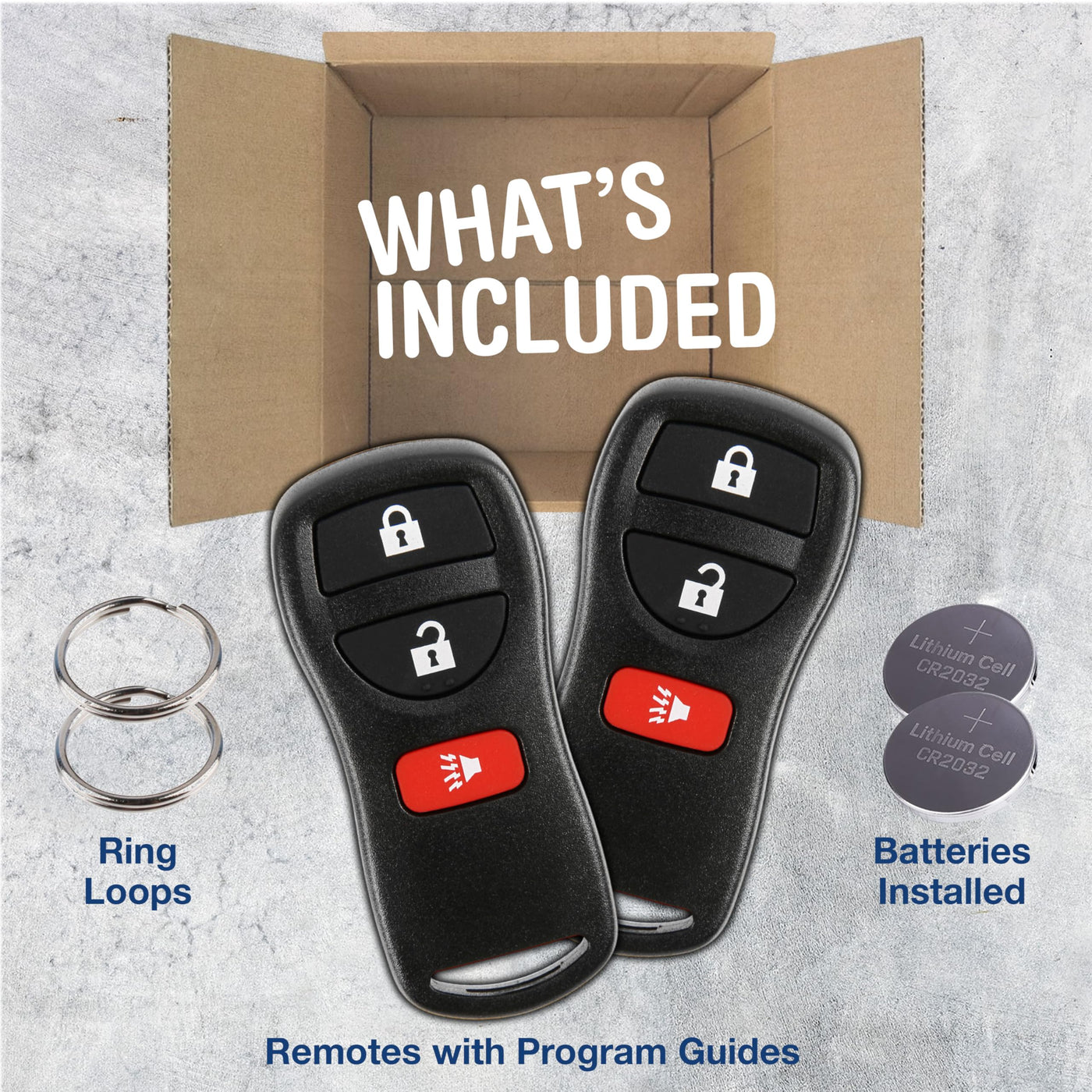 Q: What materials are used in this key fob, and is it safe to use?A: The key fob is primarily made from durable plastic materials. However, please note that it contains lithium metal batteries, which should be handled with care and kept away from children.
