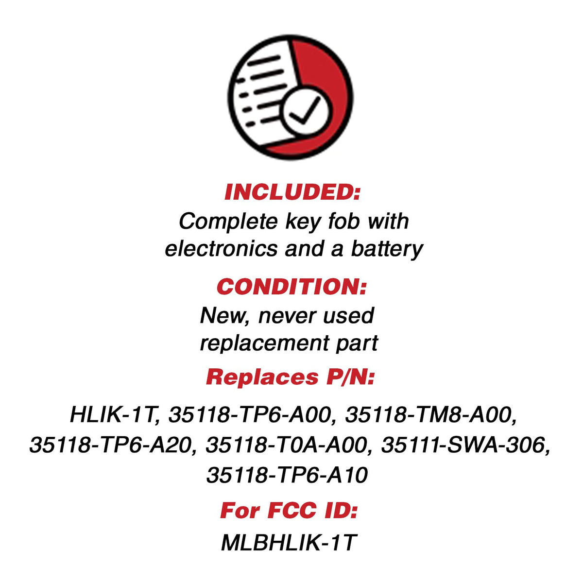 Keylessoption Is A Quick, Easy And Affordable Way To Replace Your Keyless Entry Remote Control Car Key Fob. Our Products Are Constructed With High Quality Materials For Long Lasting Durability. This Is A Replacement Part To Match The Original In Form And Function. Replacement Uncut Ignition Key Keyless Entry Remote Combo With Electronics And Battery Installed. Key Will Need To Be Cut, Remote And Transponder Will Need To Be Programmed By Dealer Or Locksmith To Start The Vehicle. Please Use The Parts Finder To Ensure This Key Is Compatible With Your Vehicle. Please Also Visually Compare This Part And Part Number To The Original Remote For The Vehicle.