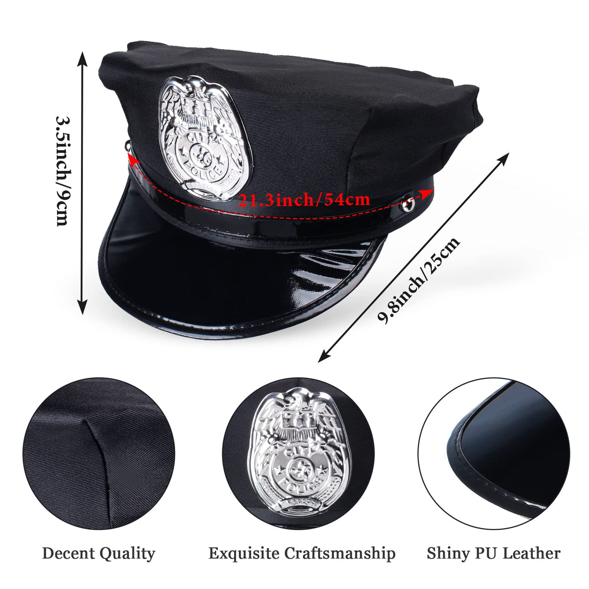 Ideal costume set for your kiddo who try to pretend to be a police/policeman/cop/police officer/SWAT team member in Halloween costume party and stage performance.This police accessories set help your child spend endless hours of law enforcement fun Features: Perfect for a young imagination. 7 pieces in pack,all-inclusive and cost-effective set Use it for career day and match mommy or daddy. Practical and inspiring present to kids who have a cute obsession for being a police officer Specification: Material:polyester,plastic Hat size:54 cm/21 inch in head circumference Vest size:42*44cm/16.5*17.3 inch Color:black Package includes: 1 x police officer cap 1 x police vest 1 x police badge holder 1 x police handcuffs with keys 1 x police baton 1 x whistle 1 x sunglasses Note: 1.Manual measurement,please allow slight errors on size. 2.The colors may exist slight difference due to different screens.